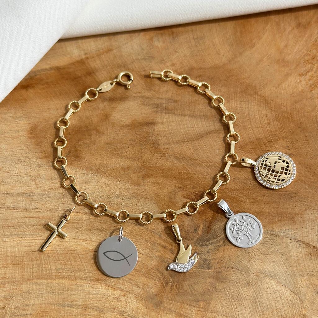 Ein besonderes Gemeinschaftsgeschenk ist das Bettelarmband. Jeder, der sich daran beteiligen möchte, kann einen Goldanhänger auswählen, um das Armband zu vervollständigen und so eine wertvolle Erinnerung an die Gemeinschaft und den Glauben zu schaffen. Als Alternative zu Anhängern bieten wir auch elegante Goldohrringe an, die das Ensemble vervollständigen und dem Mädchen einen Hauch von Eleganz verleihen. Feiern Sie die Erstkommunion eines Mädchens mit zeitlosen Schätzen aus Gold und Weißgold, die ihren Glauben und auf wunderschöne Weise zum Ausdruck bringen. Besuchen Sie uns und entdecken Sie unsere liebevoll-zusammengestellte Kollektion, die für diesen besonderen Anlass geschaffen wurde.