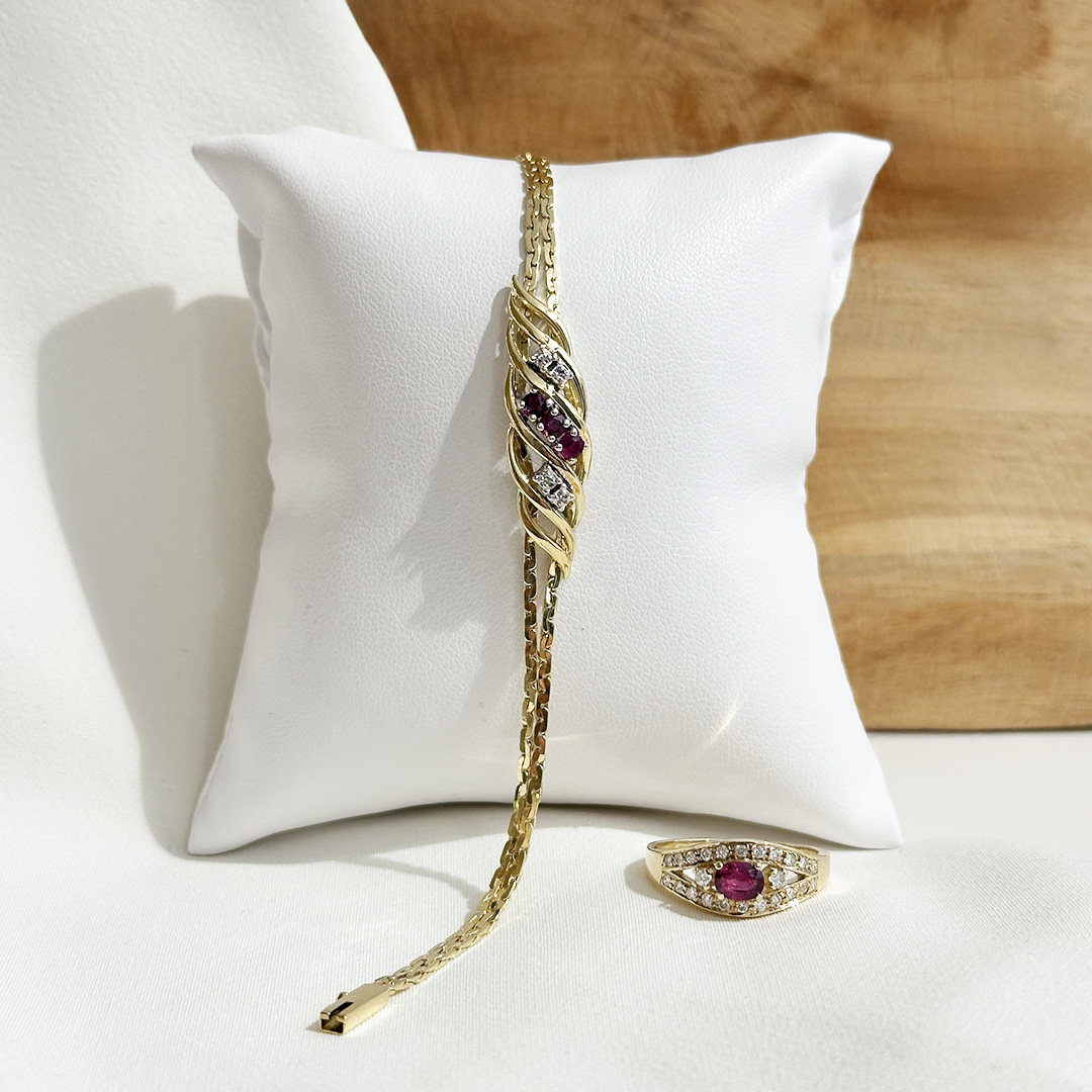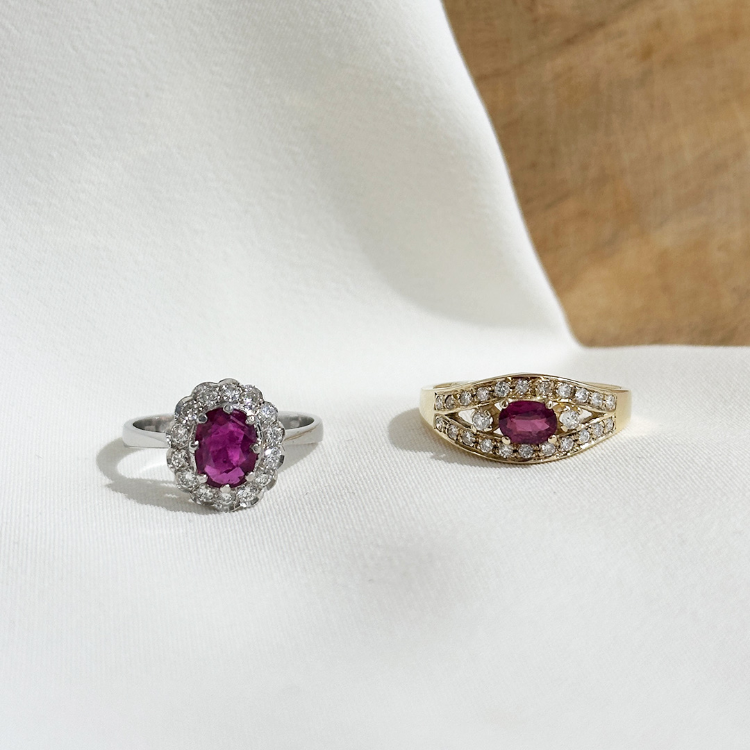 Rubin-Schmuck ist die klassische Wahl zum 40. Hochzeitstag – er steht für Liebe, Lebenskraft und gewachsene Verbundenheit. In Kombination mit feinem Gold oder funkelnden Diamanten entfaltet der Rubin seine ganze Ausstrahlung. Ob Ring, Anhänger oder Ohrschmuck: Jedes Stück symbolisiert Beständigkeit und Tiefe. Viele unserer Rubine sind in Einzelanfertigungen verarbeitet und können mit einer Gravur – etwa einem Datum oder Initialen – zu einem ganz persönlichen Erinnerungsstück werden.