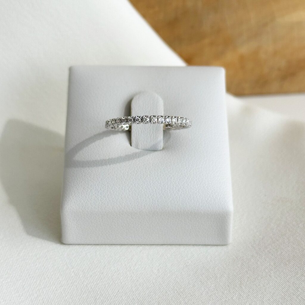 Statt einzelne Diamanten im Nachhinein hinzuzufügen, fertigen wir Memoire Ringe mit einem durchdachten Besatz: wahlweise mit wenigen Steinen, halb ausgefasst oder rundum mit Brillanten versehen. Die Anzahl und Anordnung der Steine wird gemeinsam mit Ihnen abgestimmt – ganz nach Stil, Tragegefühl und Anlass. So entsteht ein individueller Memoire Ring, der persönliche Erinnerungen sichtbar macht und sich harmonisch in den Alltag integrieren lässt.