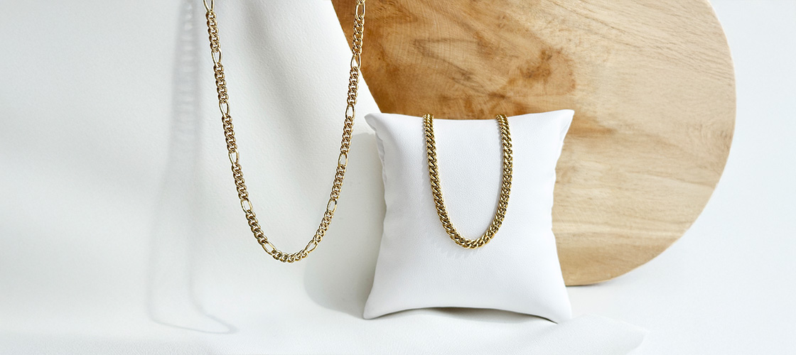 Auch Herren finden bei uns eine vielfältige Auswahl an Goldketten, die durch kräftigere Ausführungen und markantere Glieder überzeugen. Besonders beliebt sind Längen zwischen 50 und 60cm, die sich sowohl mit Anhänger als auch allein tragen lassen. Klassische Muster wie Panzer-, Figaro-, Karree- oder Venezianerketten wirken in maskuliner Ausführung besonders stilvoll und werden aus 585 oder 750 Gelb- und Weißgold gefertigt. Damit bieten wir Ihnen Schmuckstücke, die Robustheit mit Eleganz verbinden. Zu den Goldketten für Herren.