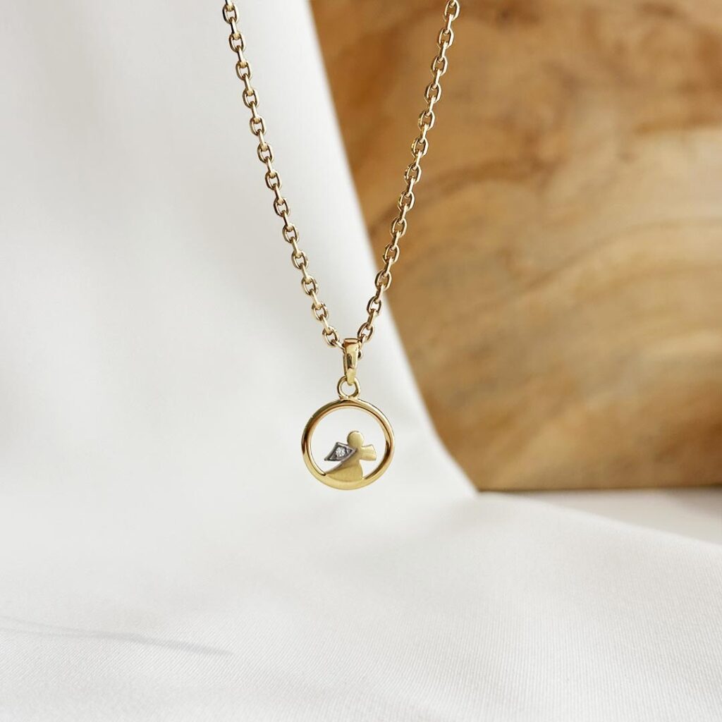 Unsere Auswahl an Schutzengel-Anhängern ist vielfältig und liebevoll zusammengestellt. Sie umfasst klassische, runde Formen ebenso wie ovale oder eckige Designs. Es gibt Modelle in Gelbgold, Weißgold oder zweifarbigem Gold, schlichte Anhänger ebenso wie solche mit durchbrochener Gestaltung, strukturierter Oberfläche oder feinem Steinbesatz. Auch Schutzengel mit Emaille finden sich in unserem Sortiment. Die Designs reichen von traditionellen Ausführungen bis hin zu modernen Varianten, die sich auch von Erwachsenen gut tragen lassen – etwa als Begleiter in einer neuen Lebensphase, als Geschenk zur Erstkommunion oder als Symbol in besonderen Zeiten. Für Mädchen und Jungen, für Kinder und Erwachsene: Unsere Schutzengel sollen Menschen in jeder Lebensphase begleiten.