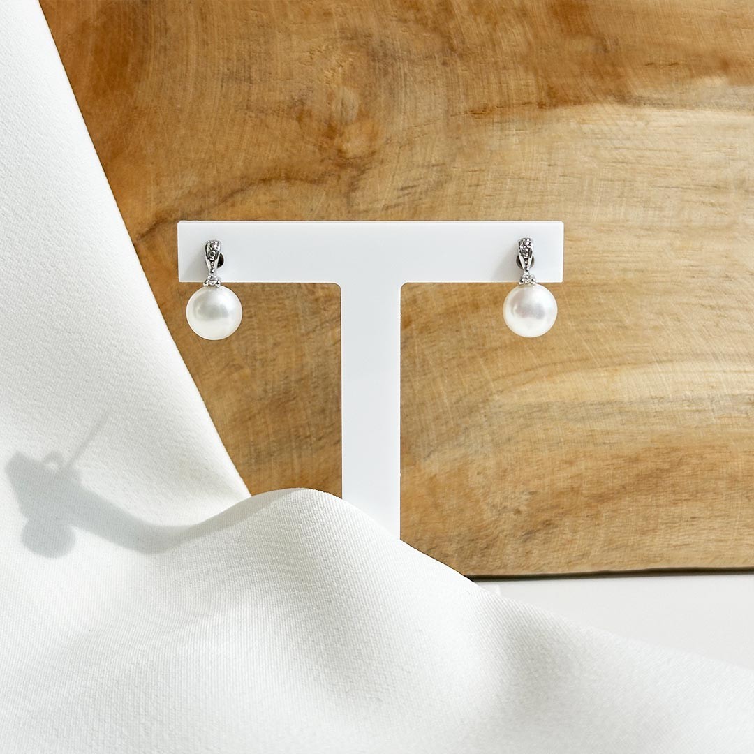 Diese Perlenohrstecker aus 585er Weißgold verbinden klassische Eleganz mit einem Hauch von Moderne. Über der schwebend gefassten Süßwasserperle sind kleine, funkelnde Diamanten eingearbeitet, die dem Ohrschmuck eine zarte Brillanz verleihen. Die zurückhaltende Gestaltung macht diese Stecker zu einer feinen Wahl für alle, die dezenten Perlenschmuck bevorzugen oder erstmals in die Welt der Perlen eintauchen möchten. Mit einer Gesamtgröße von rund 13mm sind sie angenehm zu tragen und zugleich stilvoll präsent – ein Schmuckstück mit viel Feingefühl.