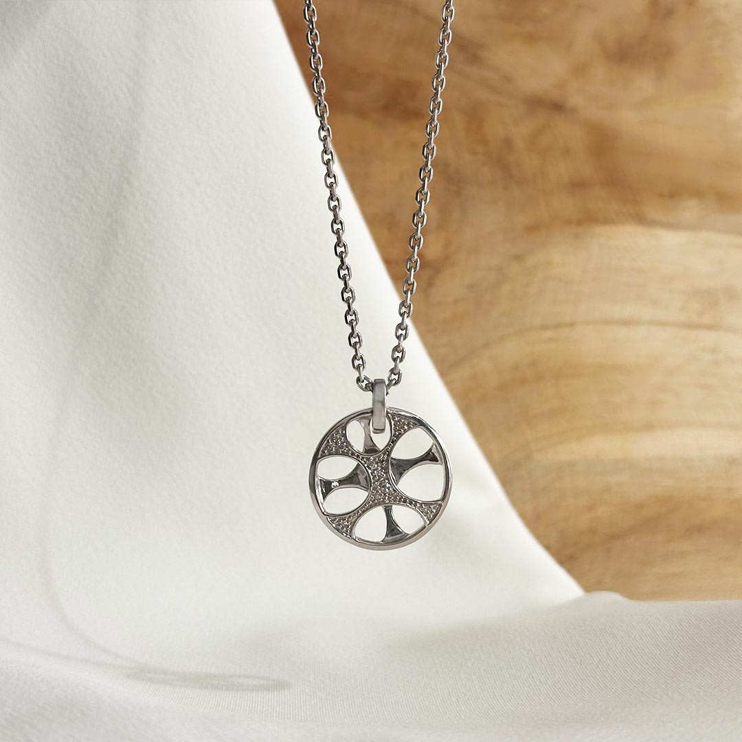 Dieser Anhänger aus 585er Weißgold besticht durch sein offen gearbeitetes Design und eine elegante Formgebung. Die feinen Brillanten sind dezent in das Schmuckstück eingearbeitet und bringen ein sanftes Funkeln ins Spiel. Zwischen den funkelnden Elementen sorgen mattierte Flächen für ein zurückhaltendes Wechselspiel aus Licht und Struktur. Mit einem Durchmesser von ca. 18mm wirkt der Anhänger präsent, ohne aufdringlich zu sein – eine harmonische Kombination aus Leichtigkeit und Raffinesse. Passende Weißgoldketten in verschiedenen Längen und Stärken finden Sie ebenfalls in unserem Sortiment.