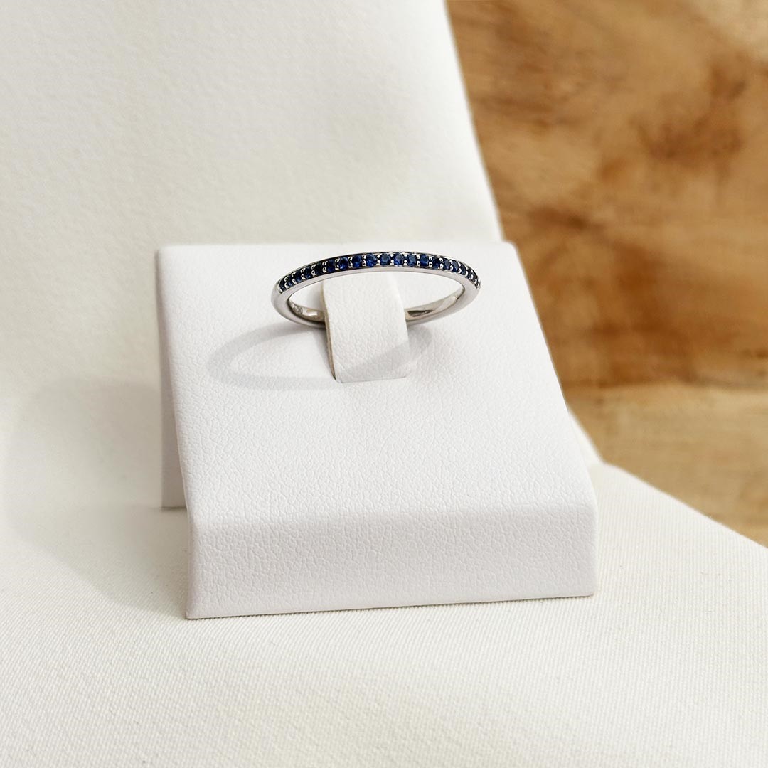 Dieser Ring aus 585 Weißgold ist mit insgesamt 0,16ct Saphiren halb ausgefasst und verbindet klassisches Design mit moderner Zurückhaltung. Die intensiv blauen Edelsteine kommen auf dem kühlen Weißgold besonders schön zur Geltung und verleihen dem Ring eine zeitlose Ausstrahlung. Die leicht gewölbte Ringschiene sorgt für angenehmen Tragekomfort und macht ihn zu einem idealen Begleiter – sowohl solo getragen als auch in Kombination mit anderen Ringen. Durch seine schlichte Eleganz passt er sich unterschiedlichsten Stilrichtungen an und setzt dabei immer einen feinen, farbigen Akzent. Der Ring ist in der Weite 54 vorrätig.