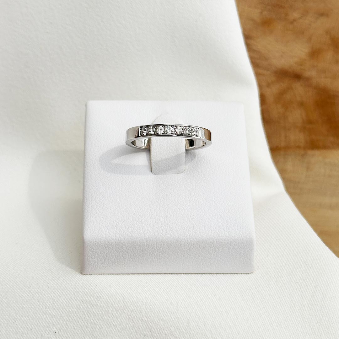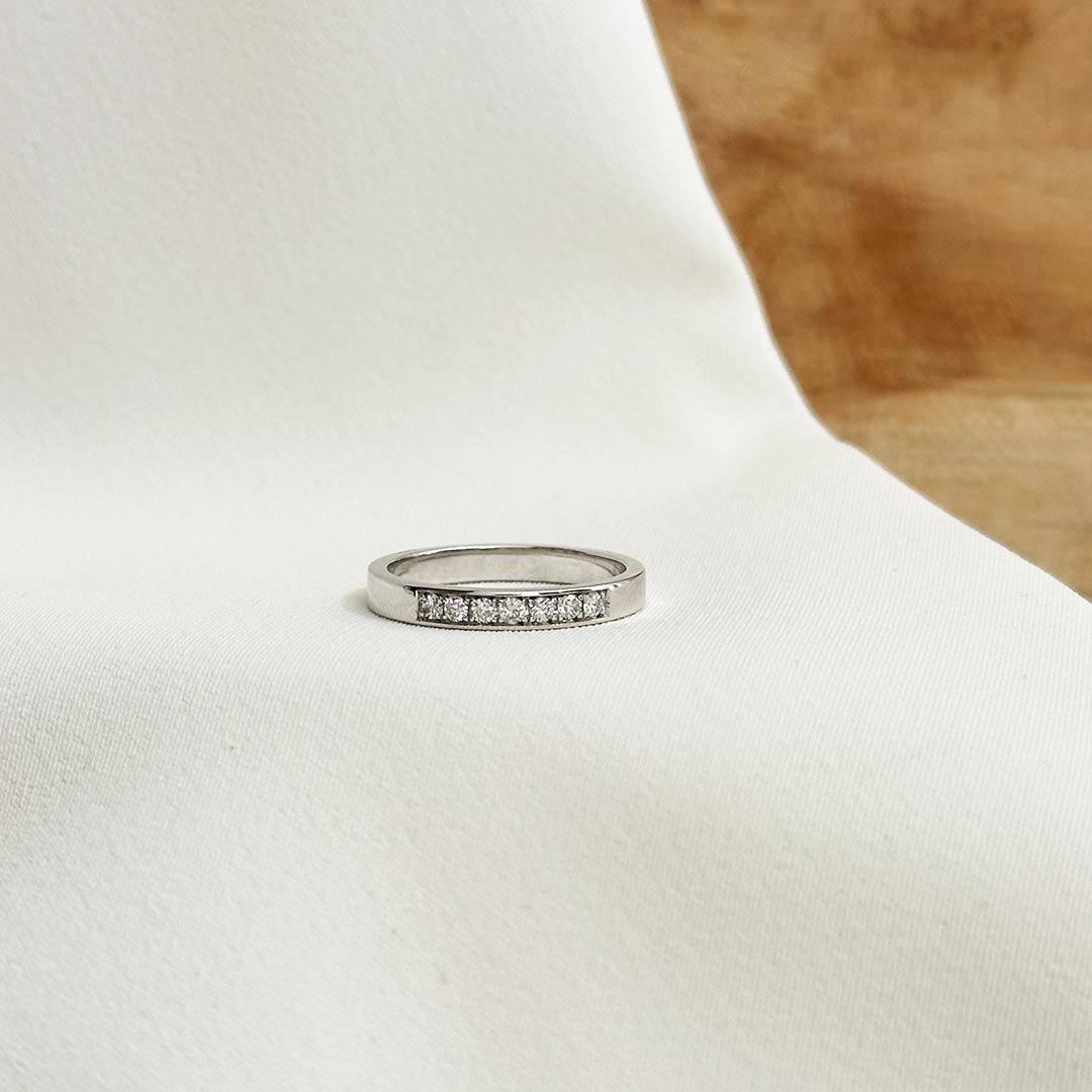Dieser Diamantring aus 585er Weißgold ist mit sieben strahlenden Brillanten besetzt, die in feiner Reihe nebeneinander eingefasst sind. Die klare, gleichmäßige Anordnung verleiht dem Ring eine ausgewogene Eleganz, die sich dezent und doch wirkungsvoll zeigt. Ob als schlichter Ehering, liebevolles Geschenk oder stilvoller Alltagsbegleiter – dieses Schmuckstück überzeugt durch seine zeitlose Gestaltung und die klassische Verbindung von kühlem Weißgold und funkelnden Diamanten. Ein Ring, der jedem Moment eine besondere Note verleiht. In Ringweite 54 sofort erhältlich.