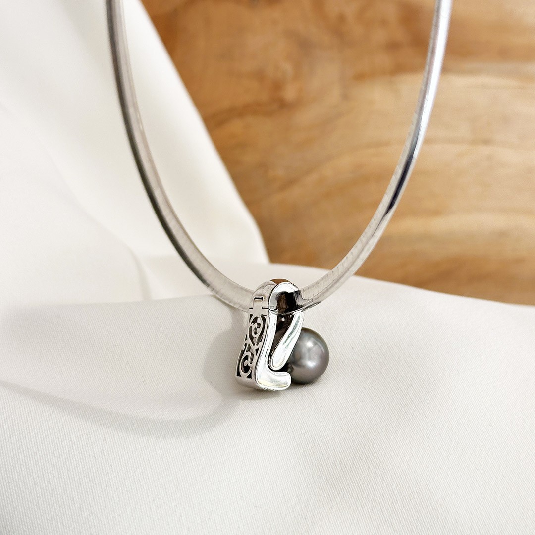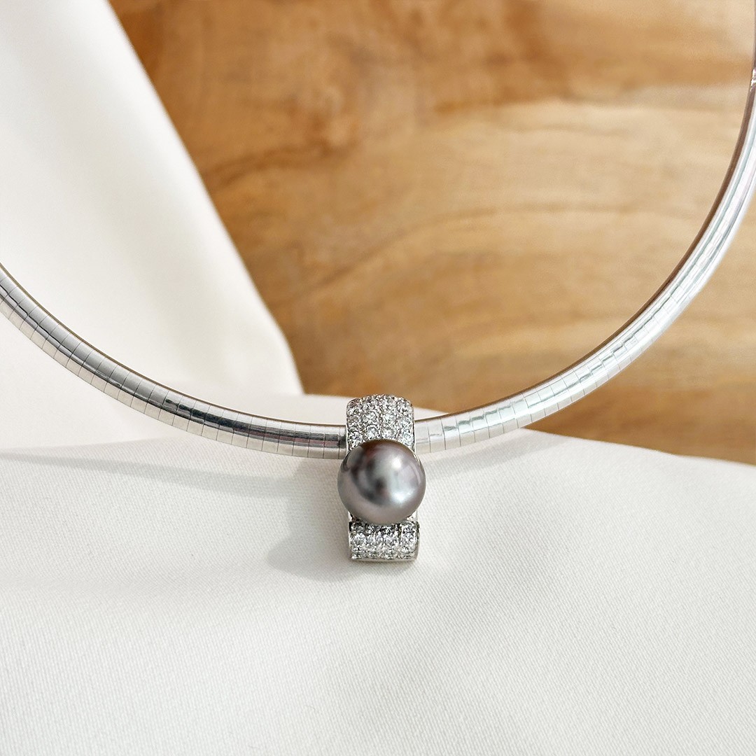 Entdecken Sie unseren eleganten Brillantanhänger aus 585 Weißgold, besetzt mit insgesamt 0,22ct. funkelnden Brillanten und einer Tahiti Perle. Dieser Anhänger zieht sofort alle Blicke auf sich und strahlt in perfekter Harmonie mit der grauen Perlenfarbe und dem glänzenden Weißgold. Das Besondere an diesem Schmuckstück ist seine Vielseitigkeit: Der Anhänger kann geöffnet werden und sowohl an einem Halsreif als auch an einer Perlenkette getragen werden. Kombinieren Sie dazu schlichte Tahitiperlen-Ohrstecker oder klassische Brillantohrstecker. Genießen Sie die raffinierte Eleganz dieses außergewöhnlichen Anhängers.