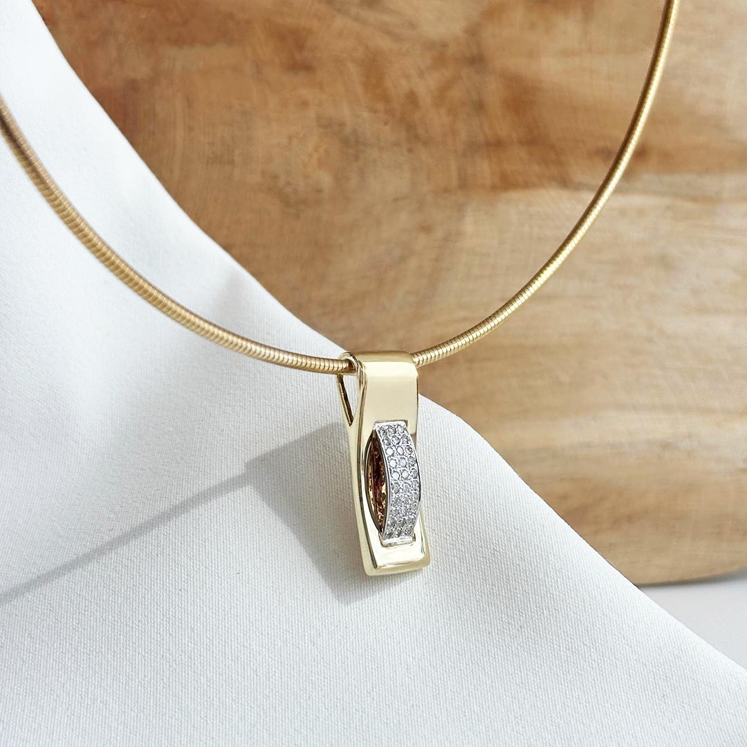 Erfreuen Sie sich an zeitloser Eleganz mit unserem 585 Goldanhänger mit 0,30ct. Brillantbesatz. Das rechteckige Design, mit einem modernen Schwung interpretiert, vereint klassische und zeitgemäße Elemente. Die polierte Oberfläche verleiht dem Anhänger eine raffinierte Ausstrahlung. Der Anhänger wird auf einem Omega-Collier präsentiert, was seine Eleganz betont und ihm eine zusätzliche Dimension verleiht. Ein Accessoire, das durch seine harmonische Kombination von Form, Oberfläche und Edelsteinen begeistert.