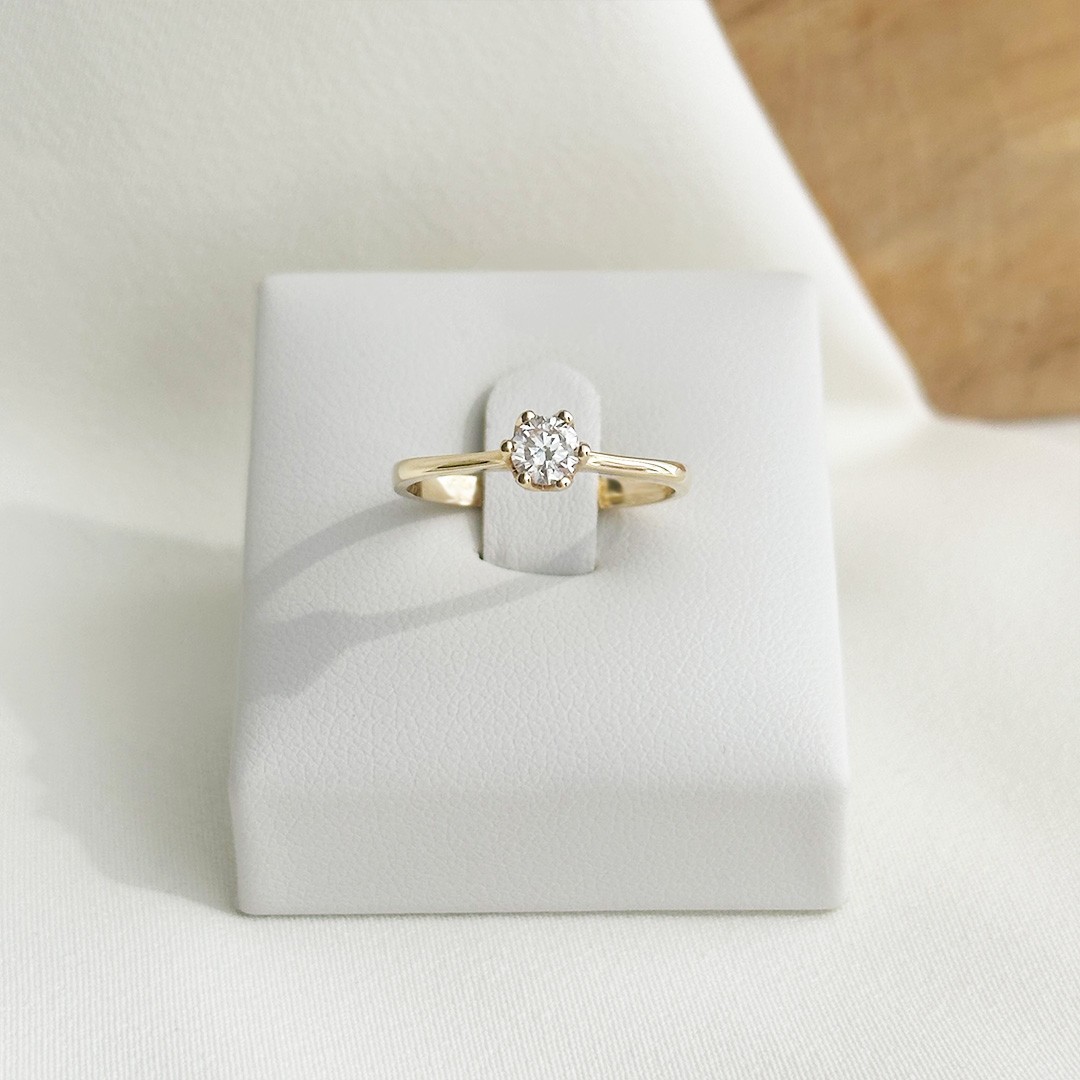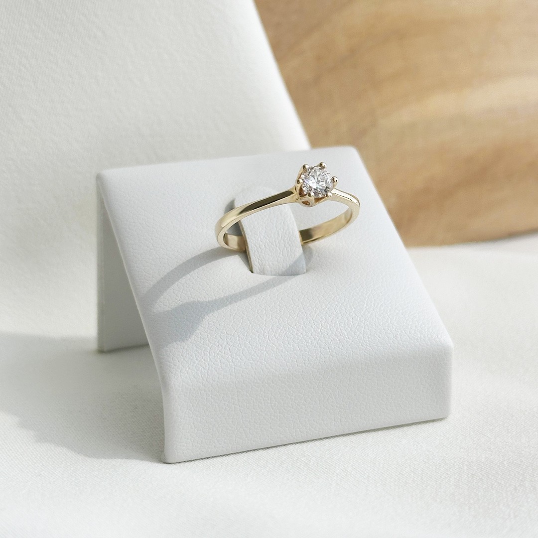 Dieser Solitär Verlobungsring aus 585er Gelbgold steht für klassische Eleganz und eine klare, zeitlose Formensprache. Im Mittelpunkt strahlt ein 0,30ct. Brillant, gefasst in einer klassischen 6-Krappenfassung, die dem Stein ermöglicht, besonders viel Licht einzufangen und seine Brillanz voll zu entfalten. Die Ringschiene verjüngt sich sanft zum Diamanten hin und wird zum Stein hin schmäler, wodurch der Fokus bewusst auf das funkelnde Zentrum gelenkt wird. Obwohl die Schiene eher gerade gehalten ist, wirkt sie durch ihre weich abgerundete Verarbeitung äußerst schmeichelnd und angenehm am Finger. Der Ring ist so gestaltet, dass er sich später harmonisch mit einem Ehering kombinieren lässt und damit ein bleibender Begleiter Ihrer gemeinsamen Geschichte wird. Ein stilvoller Verlobungsring für den besonderen Moment der Frage aller Fragen. Der Ring ist in der Weite 54 bei uns im Geschäft lagernd, eine Anpassung der Ringweite ist selbstverständlich gerne möglich.