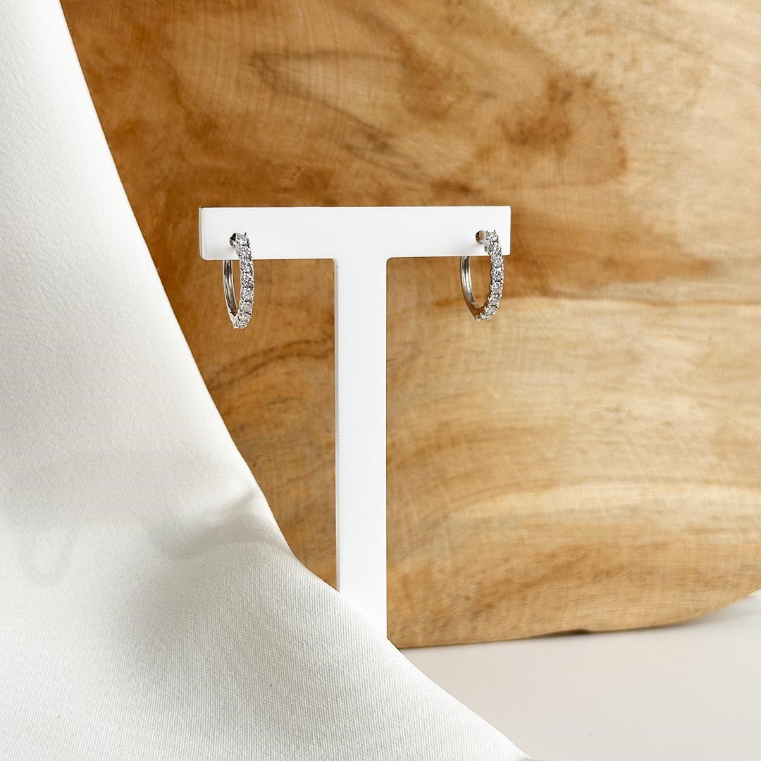 Diese eleganten Creolen aus 585er Weißgold sind mit 18 funkelnden Brillanten besetzt – insgesamt 0,45ct. – und vereinen zeitlose Schönheit mit stilvoller Raffinesse. Durch ihr klassisches Design sind sie ein echtes Must-Have für alle, die feinen Brillantschmuck lieben. Ob im Alltag zu einer schlichten Bluse im Büro oder als edles Detail bei festlichen Anlässen – diese Diamantcreolen lassen sich vielseitig kombinieren. Für ein harmonisches Gesamtbild empfehlen wir dazu ein passendes Weißgold-Collier oder weiteren Diamantschmuck – denn funkelnde Akzente passen einfach immer.