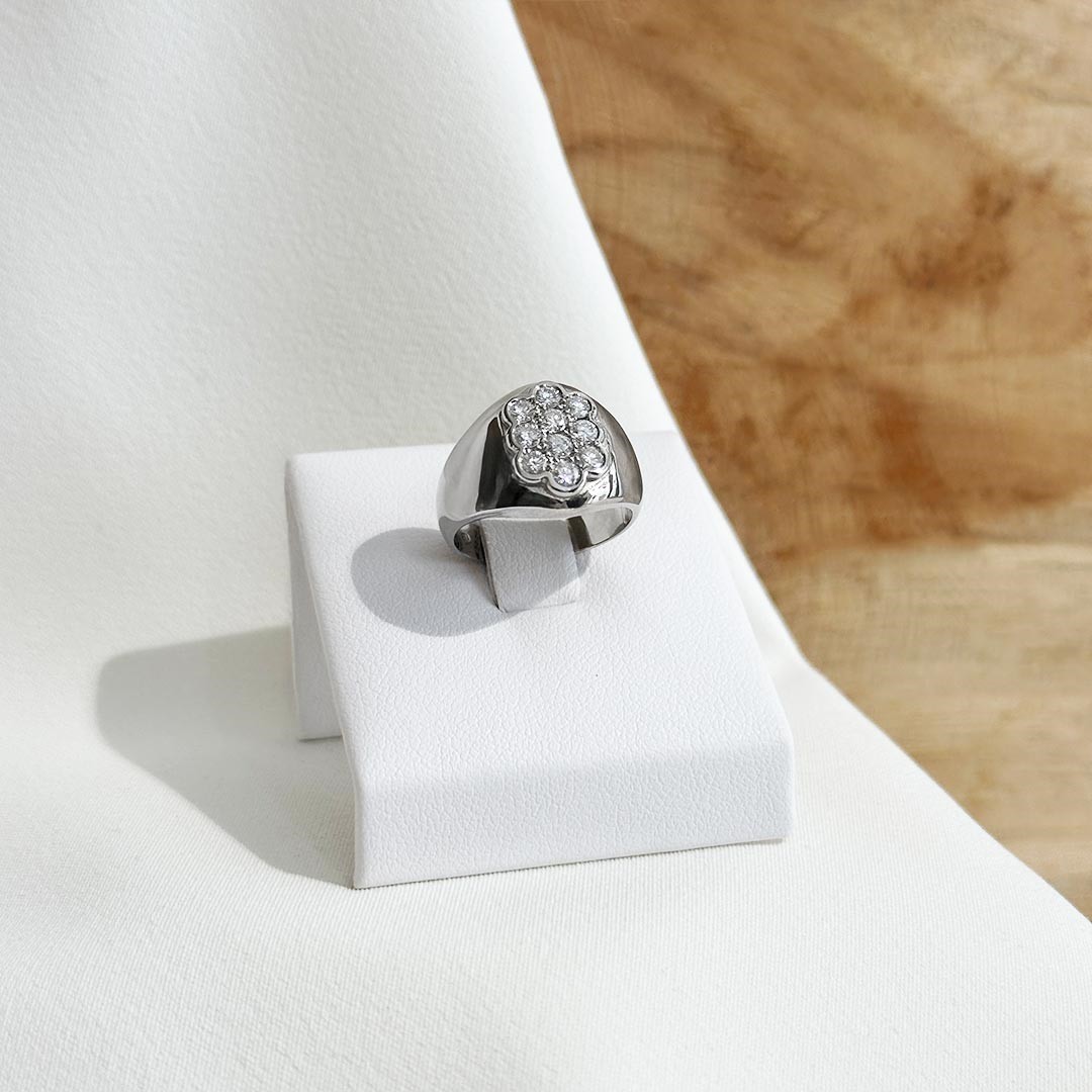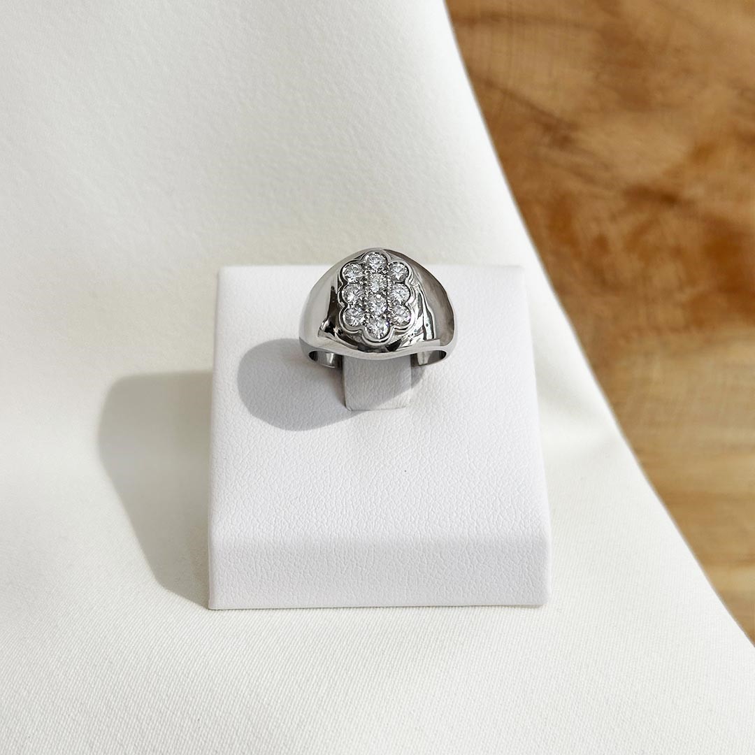 Dieser Brillantring aus 585 Weißgold überzeugt durch sein klassisches, geradliniges Design und ist mit insgesamt 0,51ct. Brillant besetzt. Die solide Ausführung unterstreicht die Leuchtkraft der Diamanten und verleiht dem Ring eine klare Präsenz. Das kühle Weißgold schafft eine edle Bühne, die das Funkeln der Brillanten stilvoll zur Geltung bringt. Mit seiner modernen Anmutung und der harmonischen Proportion lässt sich der Ring sowohl im Alltag als auch zu besonderen Anlässen tragen. In Ringweite 51 erhältlich, eignet er sich nicht nur für den Ringfinger, sondern auch hervorragend als dezenter Blickfang am kleinen Finger.