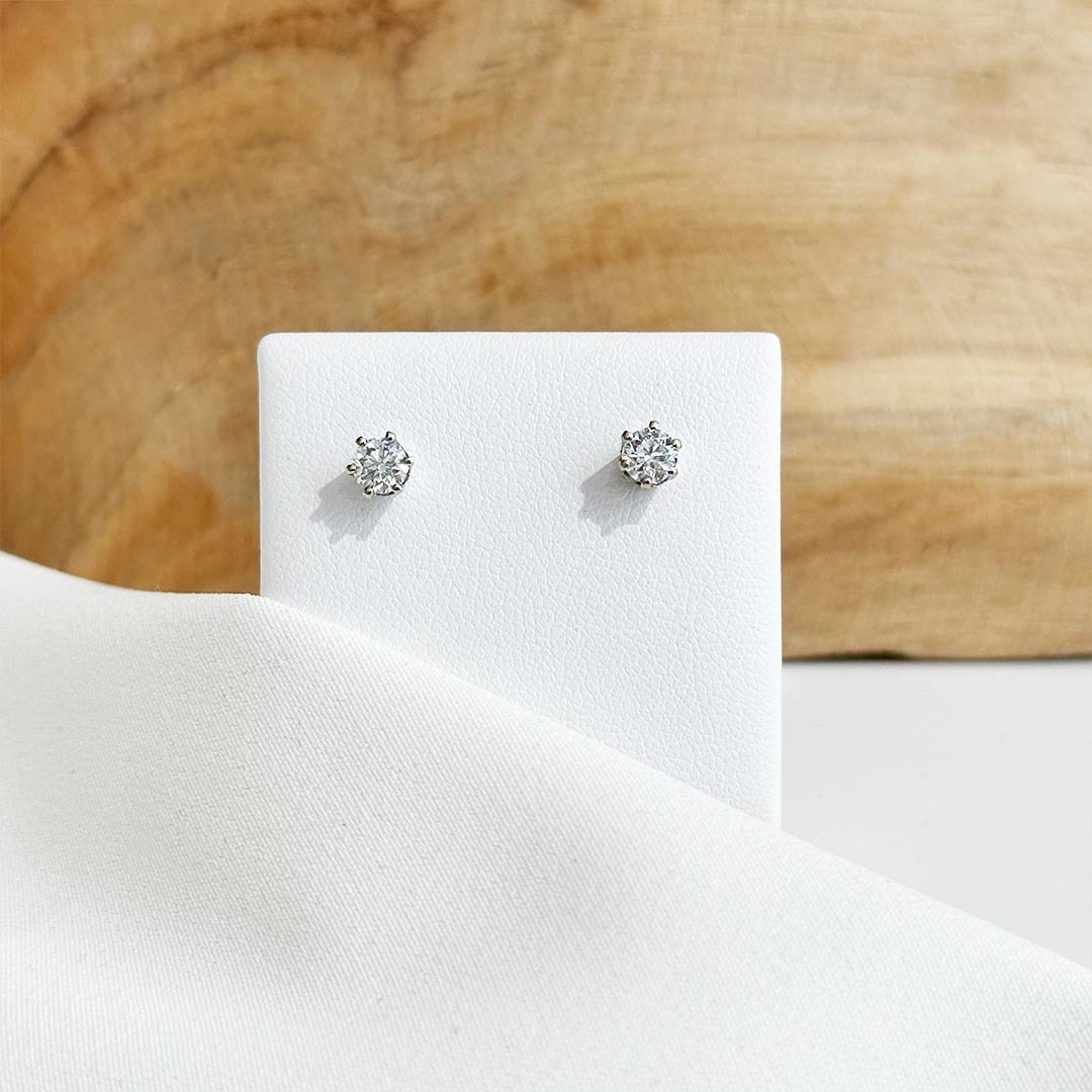 Diese Ohrschrauben aus 585 Weißgold mit insgesamt 0,60ct Brillant überzeugen durch ihre klare Formensprache und ihren sicheren Sitz. Die Brillanten im runden Brillantschliff sind jeweils in einer klassischen 6-Krappenfassung gehalten, die das Licht eindrucksvoll reflektiert und ihre funkelnde Präsenz unterstreicht.