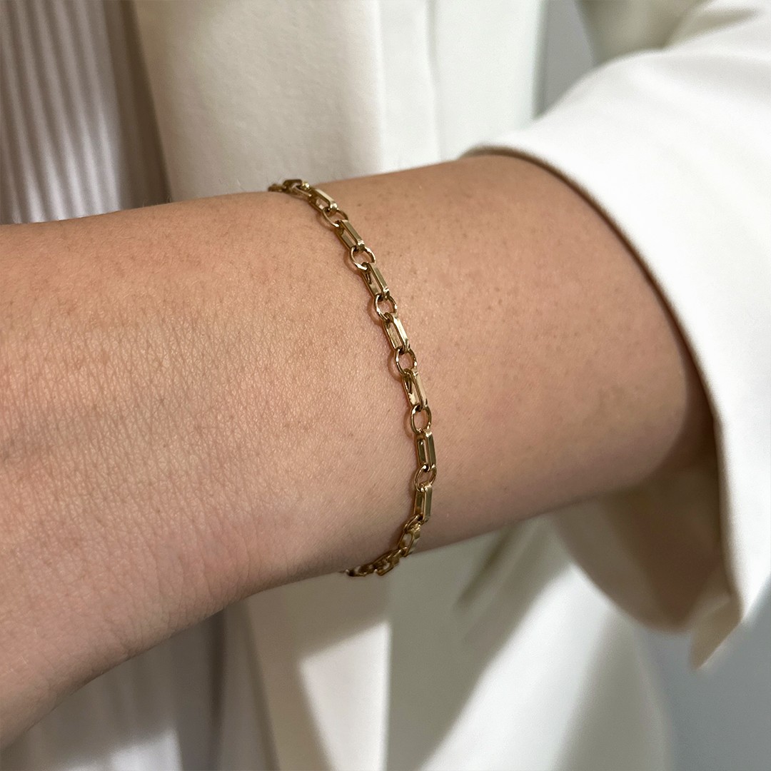 Ein Bettelarmband ist mehr als nur ein Schmuckstück – es ist eine ganz persönliche Erinnerungssammlung am Handgelenk. Jeder einzelne Anhänger steht für ein besonderes Erlebnis, einen geliebten Menschen oder einen Herzenswunsch. Dieses Bettelarmband aus 585 Gelbgold bietet dafür den idealen Rahmen: Mit einer Länge von 18cm und einer Stärke von 4,4mm besteht es aus abwechselnd polierten, runden und länglichen Gliedern. Die runden Glieder dienen als Aufnahmepunkte für die Anhänger, die sorgfältig eingelötet werden und so sicher getragen werden können. Das Armband bietet Platz für eine Vielzahl an Anhängern und wächst mit jedem Moment, den man festhalten möchte. Erhältlich ist dieses Modell selbstverständlich auch in verschiedenen Längen.
