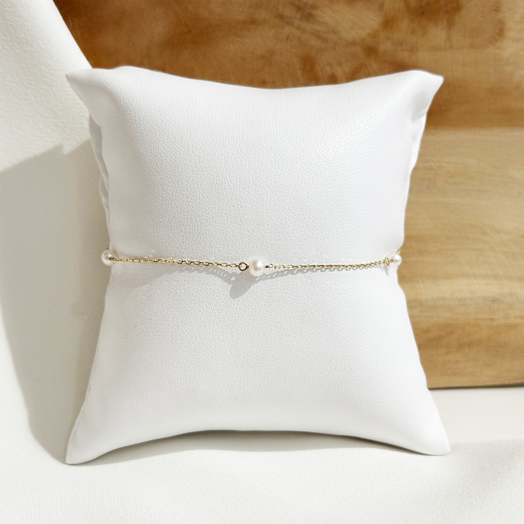 Dieses feine Armband aus 585er Gelbgold kombiniert kleine, facettierte Goldkügelchen mit weißen Süßwasserperlen in abwechselnder Anordnung. Die zarte Gestaltung und der Wechsel der Elemente verleihen dem Armband eine leichte, moderne Ausstrahlung, die sich mühelos zu verschiedenen Stilen und Anlässen tragen lässt. Mit einer Gesamtlänge von 19cm und einer praktischen Zwischenöse bei 17cm lässt es sich individuell anpassen und angenehm tragen. Ein stilvoller Begleiter, der dezente Eleganz mit einem Hauch verspielter Leichtigkeit verbindet.