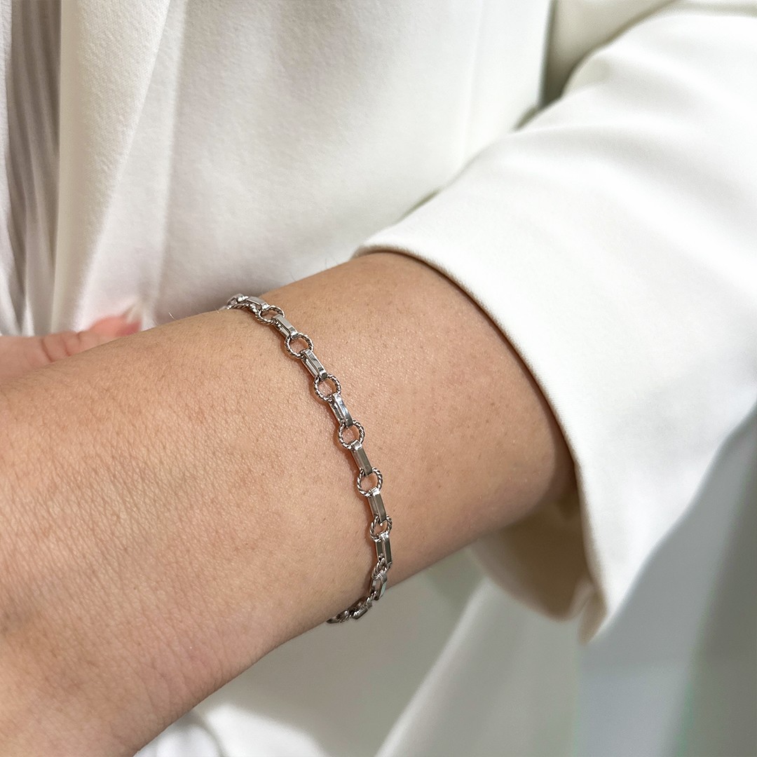 Das 585 Weißgold Bettelarmband mit Gliedern im Kordeldesign hat eine Länge von 20cm. Unsere Bettelarmbänder werden mit höchster Präzision und Liebe zum Detail in Österreich gefertigt. Bettelarmbänder sind nicht nur schmückend, sondern auch persönlich und individuell gestaltbar. Sie bieten die Möglichkeit, Erlebnisse, Wünsche und Emotionen in Form von kleinen Bettelarmband-Anhängern auszudrücken. Ob als Geschenk für sich selbst oder andere, Bettelarmbänder sind zeitlose Accessoires, die eine Geschichte erzählen. Bei Fragen zu unseren Armbändern stehen wir Ihnen gerne zur Verfügung!