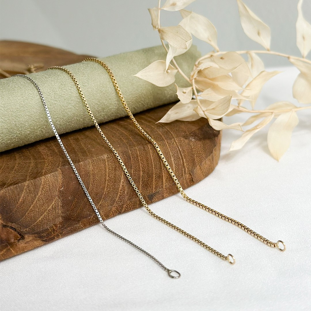 Goldkette aus 585 Weißgold mit einer Länge von 38cm und 0,9mm Stärke für Kinder und Damen mit einem zarten Hals. Für Herren empfehlen wir Kettenlängen ab 50cm. Die Venezianerkette zählt zu den beliebtesten Standard-Goldketten für Anhänger. Sie ist zeitlos, elegant und vielseitig einsetzbar. Ihre besondere Optik entsteht durch die eckigen Glieder, die abwechselnd horizontal und vertikal angeordnet und verlötet sind. Unsere Standard-Goldketten werden in Österreich hergestellt und sind in 585 oder 750 Gelb-, Weiß- und Roségold in verschiedenen Längen und Stärken erhältlich.