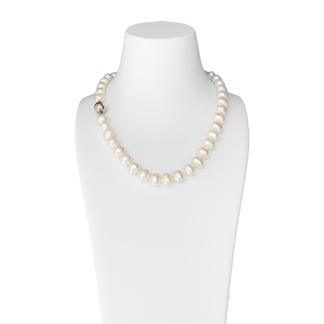 Unsere Süßwasserperlenkette besticht mit einem besonderen Charme durch ihre ovalen Süßwasserperlen, die sofort ins Auge fallen. Die runde, polierte 925 Silber Magnetschließe dient als stilvolles Highlight. Mit einer Länge von 40cm eignet sich die Kette perfekt für zarte Hälse, kann aber bei Bedarf natürlich auch verlängert werden. Die interessante Form der Perlen verleiht der ansonsten schlichten Kette eine moderne und sportliche Note. Ein zeitloser Begleiter für vielfältige Anlässe, der mit seinem einzigartigen Design Akzente setzt und gleichzeitig eine feine Eleganz ausstrahlt.