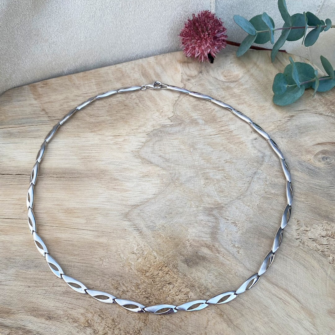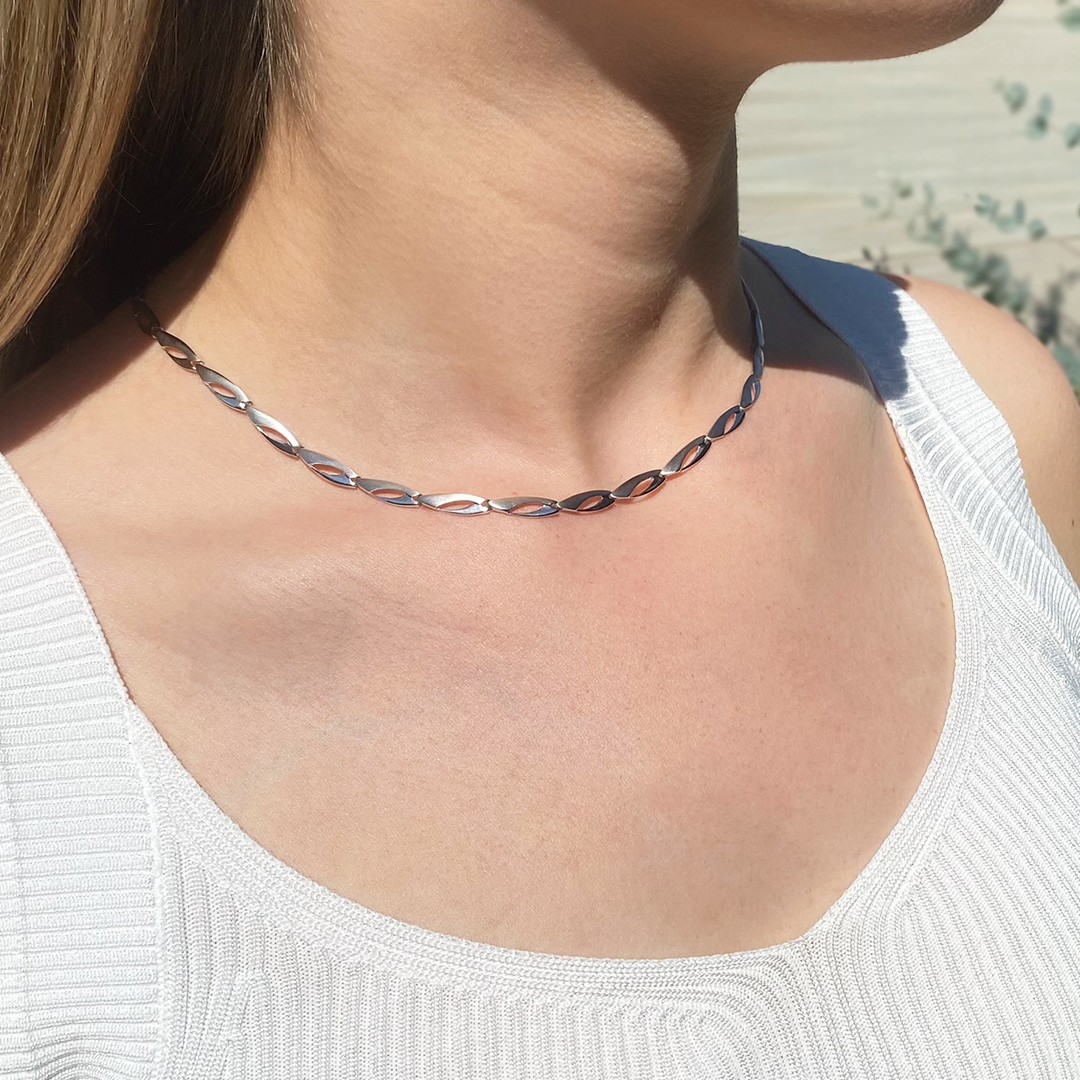 Entdecken Sie unsere elegante Damen-Weißgoldkette mit einer Länge von 42cm. Dieses klassische Collier aus 585 Weißgold fasziniert durch sein zeitloses Design. Die länglichen Glieder der Kette sind sowohl poliert als auch mattiert, was einen interessanten Kontrast schafft. Sie können dieses Collier vielseitig mit anderen Schmuckstücken kombinieren. Egal, ob Sie sich für klassische Brillantohrstecker oder längere Ohrringe aus Weißgold entscheiden – Ihrer Kreativität sind keine Grenzen gesetzt.