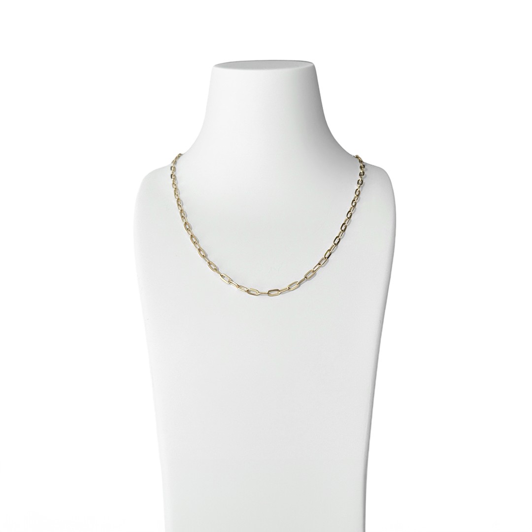 Diese ovale Gliederkette aus 585er Gelbgold ist ein vielseitiges und stilvolles Schmuckstück, das sich mühelos in jede Garderobe einfügt. Mit ihrer leichten und angenehmen Tragbarkeit bietet sie Komfort für den ganzen Tag, ob zu formellen Anlässen oder im Alltag. Die Kette besticht durch ihre unaufdringliche Eleganz und passt einfach immer – sei es zu schlichten Ohrsteckern oder zu auffallenden Ohrringen. Dank ihres dezenten Designs lässt sie sich perfekt mit verschiedenen Schmuckstücken kombinieren. Diese Goldkette ist ein Must-have für jede Schmuckliebhaberin, die nach einem zeitlosen Accessoire sucht, das sowohl alleine als auch in Kombination überzeugt.