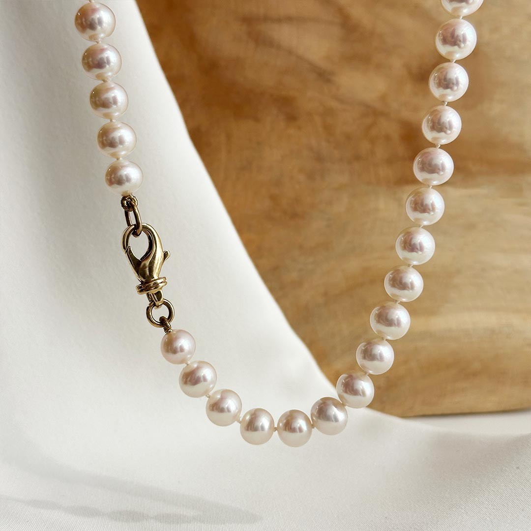 Diese klassische Süßwasserperlenkette ist zeitlos und vielseitig. Mit einer Länge von 45cm und einer Perlengröße von 8mm eignet sie sich perfekt für jeden Anlass. Die schmeichelnden Perlen passen zu jeder Kleidung, sei es zur legeren Jeans oder zum eleganten Abendkleid. Der 585 Gelbgold Karabiner ist ästhetisch und kann somit auch seitlich vorne als Blickfang getragen werden. Passend zur Kette können Goldohrringe oder Perlenohrstecker kombiniert werden, um einen harmonischen Look zu kreieren. Besuchen Sie uns und lassen Sie sich von unserer Auswahl inspirieren und beraten. Gerne zeigen wir Ihnen verschiedene Schmuckkombinationen. Gerne verpacken wir Ihnen das Schmuckstück passend zum Anlass.