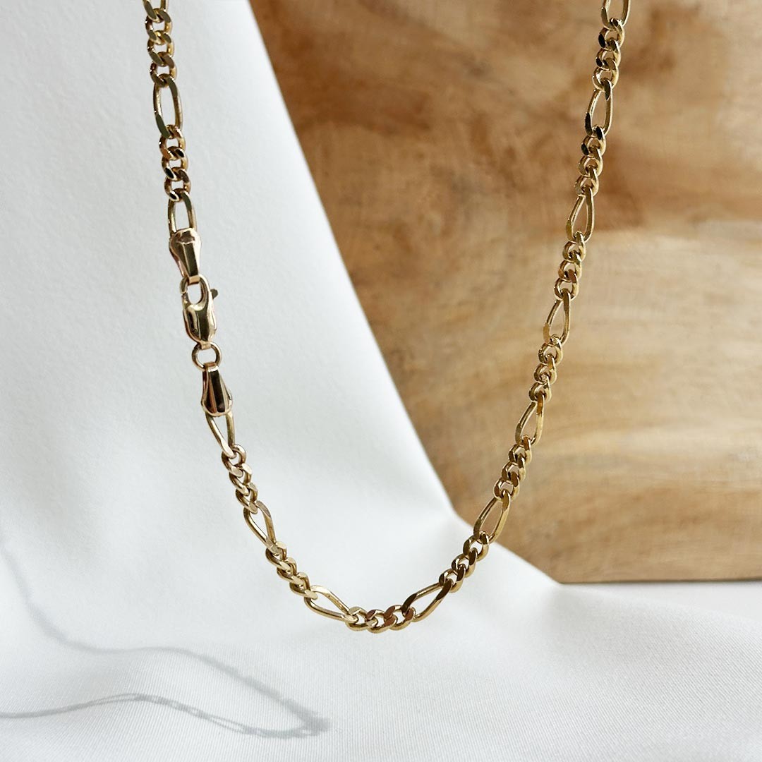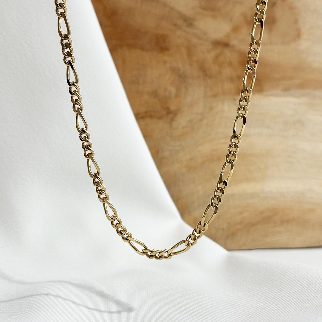 Diese Figarokette aus 585er Gelbgold ist eine klassische Variante der Panzerkette und zeichnet sich durch ihren unverwechselbaren Rhythmus aus: Auf mehrere kurze, runde Glieder folgt jeweils ein längliches, ovales Element. Dieses abwechselnde Muster verleiht der Kette eine besondere Dynamik und macht sie zu einem stilvollen Schmuckstück mit Charakter. Die hochwertige Verarbeitung sorgt für angenehmen Tragekomfort, während das traditionsreiche Design seit Generationen geschätzt wird. Mit einer Länge von 47cm eignet sich die Kette sowohl für Damen als auch für Herren mit schmalem Hals – ein zeitloses Stück für jeden Tag.