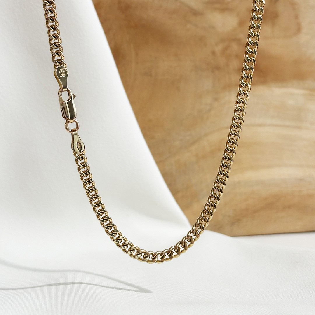 Diese Panzerkette aus 585er Gelbgold besticht durch ihre flachen, miteinander verbundenen Glieder, die der Kette ihren unverwechselbaren Charakter verleihen. Mit einer Länge von 50cm und einer Breite von 4mm ist diese Goldkette bei uns im Geschäft lagernd. Die Panzerkette ist massiv gefertigt. Durch ihr klassisches Design und die elegante Ausstrahlung ist sie ein zeitloses Schmuckstück, das sowohl im Alltag als auch zu besonderen Anlässen getragen werden kann. Obwohl Panzerketten gerne ohne Anhänger getragen werden, bietet diese Kette genügend Flexibilität, um sie nach Ihrem persönlichen Stil zu ergänzen. Diese Goldkette ist in Österreich gefertigt. Tipp zur Kettenlänge: Als Orientierung gelten folgende Standardlängen – für Damen meist 42 – 45cm, für Herren 50 – 60cm und für Kinder etwa 36 – 40cm.