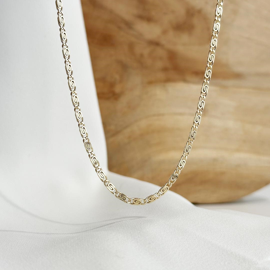 Diese besondere Irrigang-Kette, auch als S-Panzer-Kette bekannt, beeindruckt mit ihrer markanten und zugleich eleganten Struktur. Die einzigartigen Glieder sind so ineinander gearbeitet, dass sie die charakteristische S-Form ergeben, die dieser Kette ihren Namen verleiht. Durch ihr ausdrucksstarkes Design wird sie bevorzugt allein getragen. Erhältlich in verschiedenen Stärken und Längen, passt sie sich individuellen Vorlieben perfekt an und ist eine besondere Ergänzung jeder Schmucksammlung. Tipp zur Kettenlänge: Als Orientierung gelten folgende Standardlängen – für Damen meist 42–45cm, für Herren 50–60cm und für Kinder etwa 36–40cm.