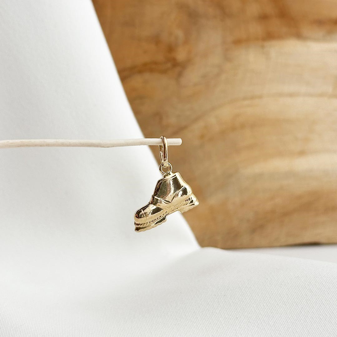 Der Bergschuh-Anhänger aus 585 Gelbgold misst 15mm und ist das ideale Schmuckstück für alle, die ihre Leidenschaft fürs Wandern und die Natur zeigen möchten. Das detailreiche Design fängt den robusten Charakter eines Bergschuhs ein und macht den Anhänger zu einem persönlichen Symbol für Abenteuerlust und Freiheit. Ob als Bettelarmband-Anhänger oder an einer feinen Goldkette getragen – dieses Schmuckstück ist vielseitig einsetzbar. Passende Bettelarmbänder und Goldketten in verschiedenen Längen und Stärken finden Sie selbstverständlich auch in unserem Sortiment.