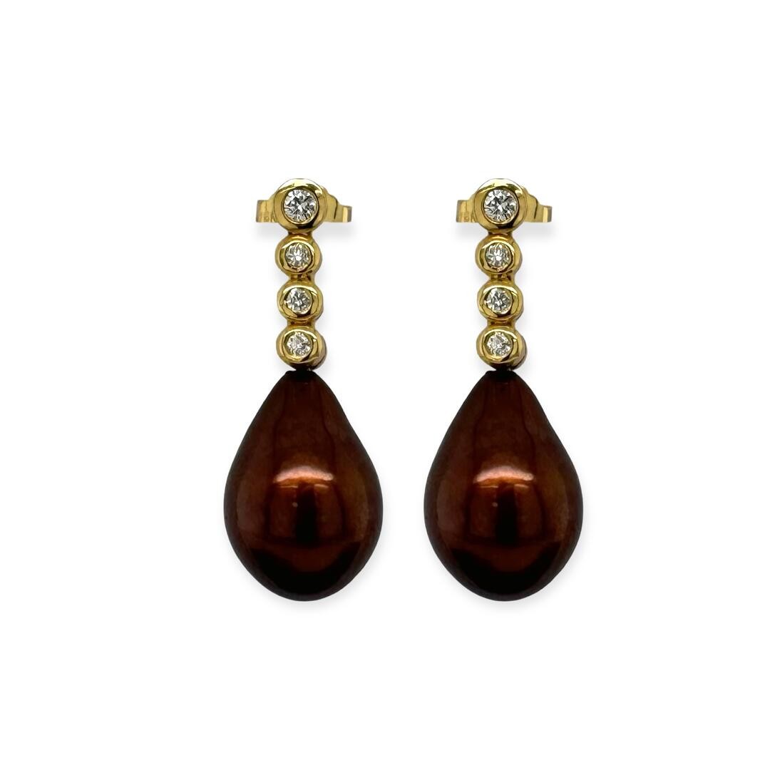 Brillant Schoko-Tahitiperlen Ohrstecker 750 Gelbgold