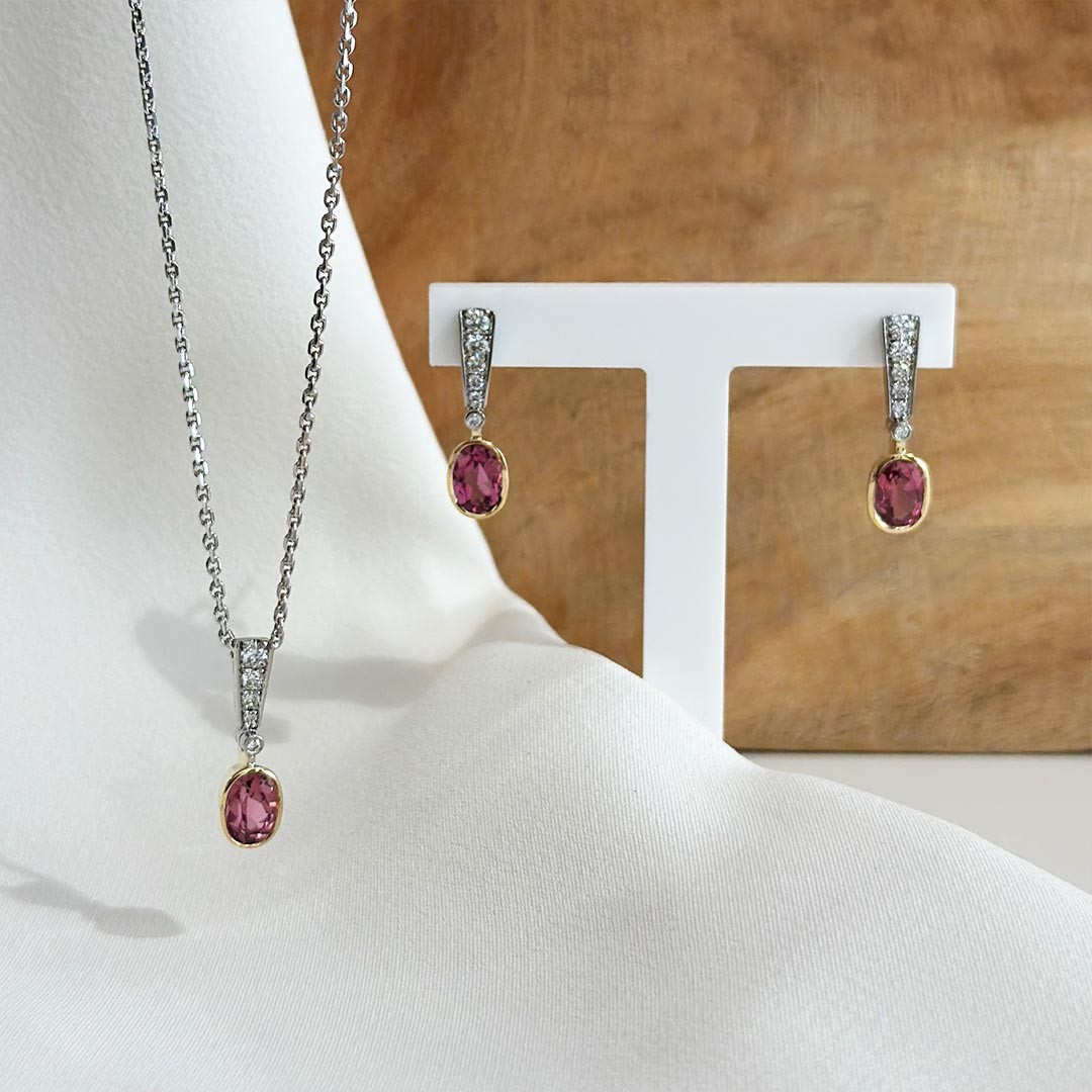 Dieser handgefertigte Anhänger aus 585 Weiß- und Gelbgold verbindet klare Linien mit feinster Edelsteinfassung. Im oberen Bereich sind Brillanten in Weißgold eingefasst – dezent abgestuft im Verlauf, sodass ihr Funkeln sanft nach unten führt. Den Abschluss bildet ein ovaler rosa-rot schimmernder Turmalin, der glatt in Gelbgold eingefasst ist und durch die warme Goldfarbe besonders zur Geltung kommt. Mit einer Größe von 20mm bleibt der Anhänger zart, wirkt aber durch die harmonische Gestaltung sehr präsent. Wir empfehlen die Kombination mit einer schlichten Karree-Kette, damit das Schmuckstück seine volle Wirkung entfalten kann. Passend dazu ist auch Ohrschmuck erhältlich.$LF$LF$LF$LF$LF$LF