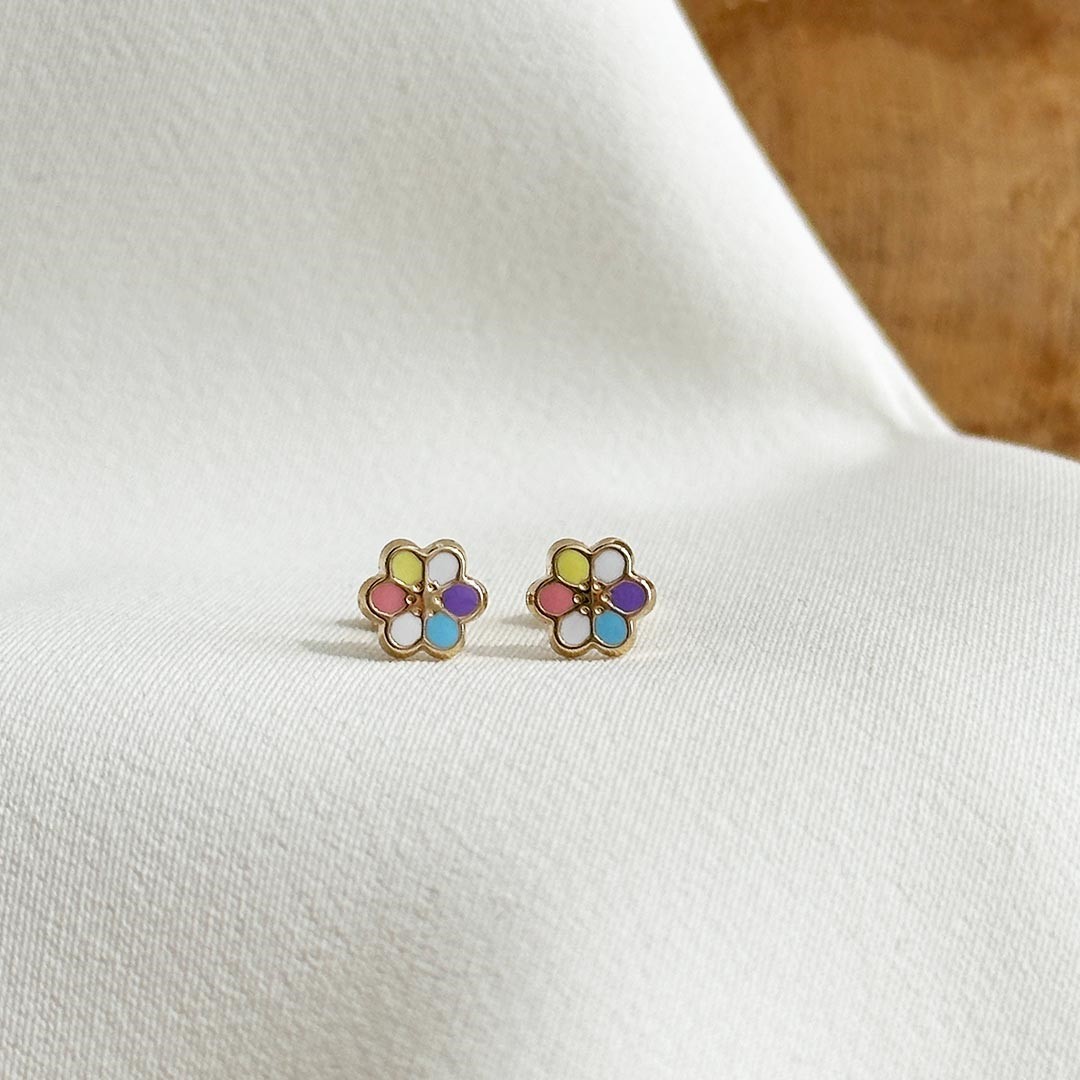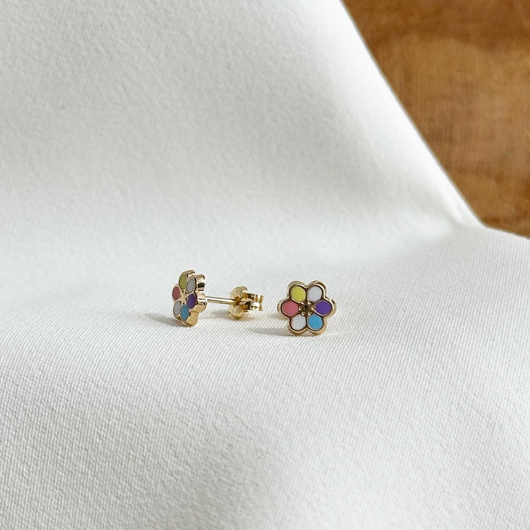Diese fröhlichen Blumen-Ohrstecker aus 585 Gelbgold sind mit farbenfroher Emaille verziert und haben eine Größe von 6mm – ideal für Kinderohren. Das bunte Blumendesign bringt Lebendigkeit und Freude in jedes Outfit und macht die Ohrstecker zu einem liebevollen Begleiter im Alltag. Die hochwertige Verarbeitung sorgt für angenehmen Tragekomfort und sicheren Halt. Ein zauberhaftes Geschenk für kleine Blumenfreunde, das Spaß macht und gute Laune verbreitet.