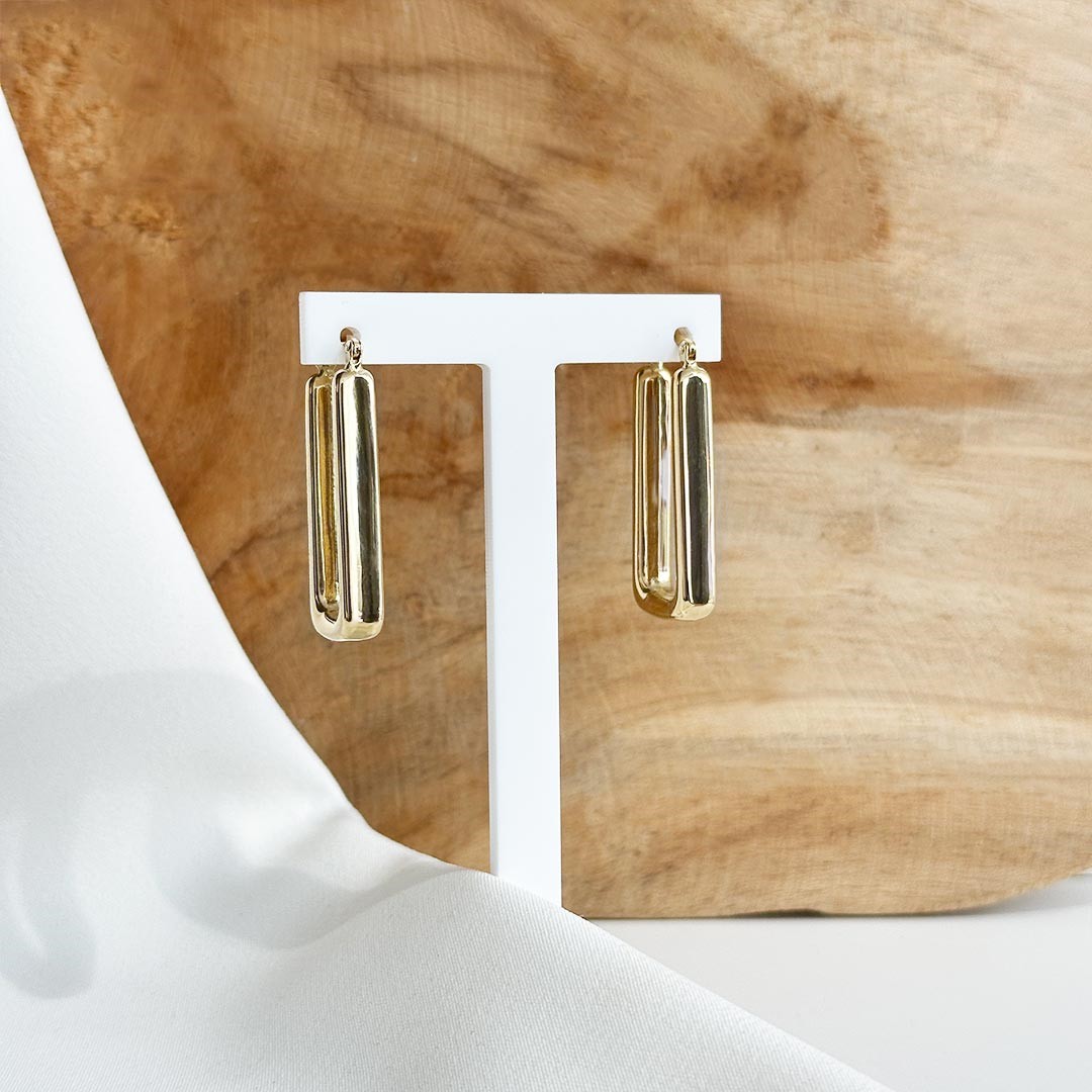 Diese Creolen aus 585er Gelbgold verbinden das angesagte Paperclip-Design mit zeitloser Eleganz und klarer Formensprache. Mit einer Länge von 30mm zeigen sie sich in stilvoller, länglicher Silhouette und wirken zugleich puristisch und modern. Dank ihrer leichten Verarbeitung bieten sie angenehmen Tragekomfort – ideal für den Alltag wie auch für besondere Anlässe. Bei jeder Bewegung fängt das Gold das Licht ein und verleiht den Creolen eine lebendige Ausstrahlung. Ein zeitgemäßes Schmuckstück, das durch Raffinesse und Zurückhaltung überzeugt.