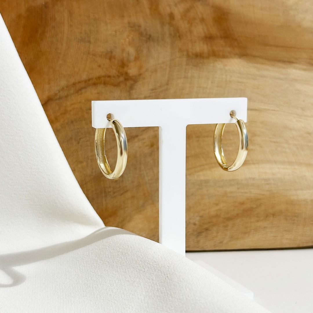 Diese Goldcreolen aus 585er Gelbgold überzeugen mit ihrer klassischen, runden Form und einer polierten Oberfläche, die dem warmen Goldton eine schöne Präsenz verleiht. Mit einem Durchmesser von 18mm sind sie dezent und dennoch gut sichtbar, dabei angenehm leicht gefertigt und komfortabel zu tragen. Ihr zeitloses Design macht sie zu einem vielseitigen Begleiter, der sich mühelos in den Alltag einfügt und ebenso zu besonderen Anlässen passt. Ein Ohrschmuck, der durch seine Schlichtheit überzeugt und in keiner Schmucksammlung fehlen sollte.