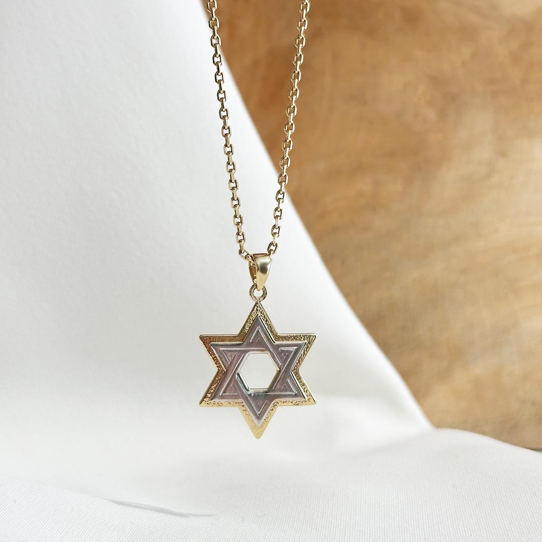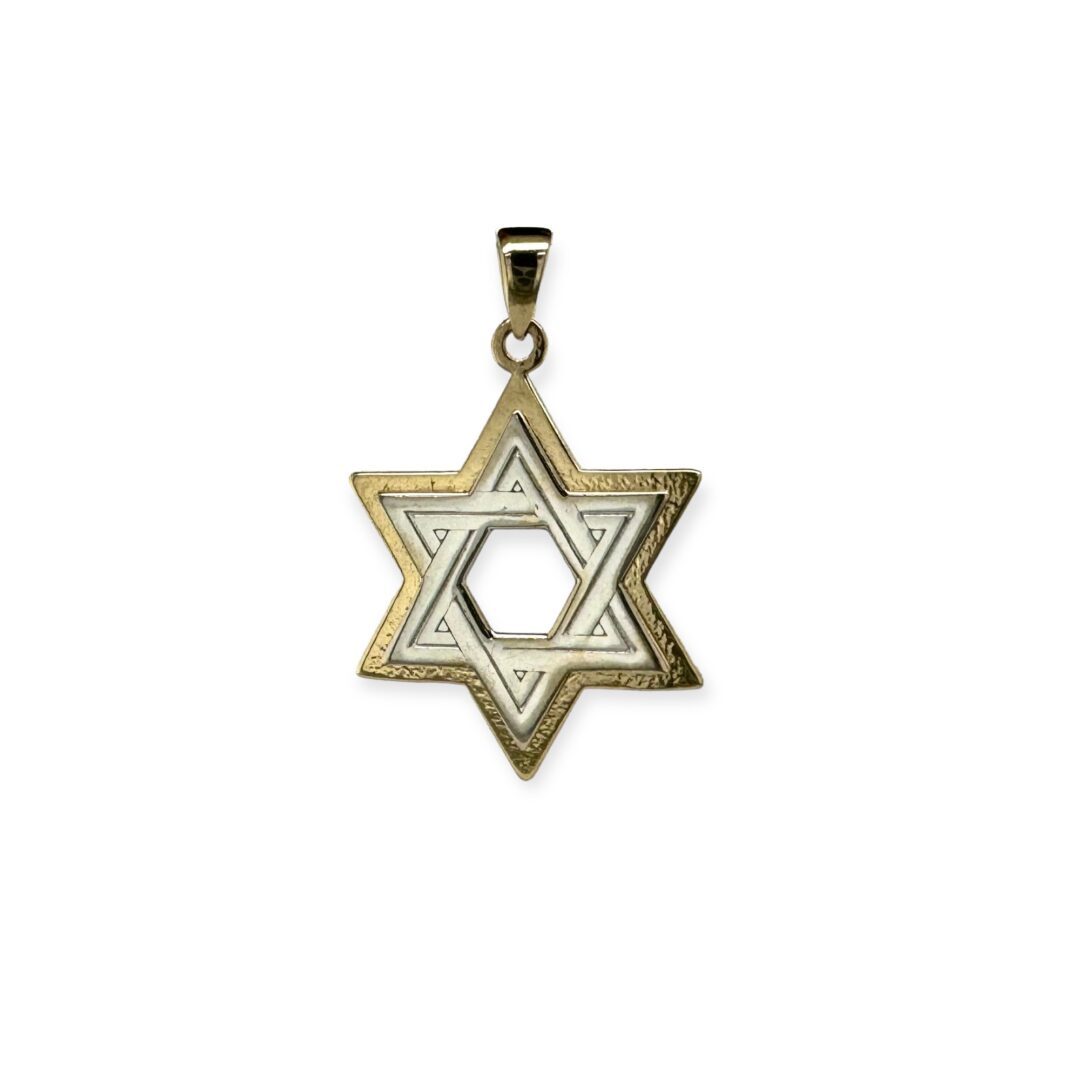 Dieser Davidstern, auch Magen David genannt, ziert die Staatsflagge Israels. Er ist das Symbol jüdischer Menschen auf der ganzen Welt. Dieser Davidstern ist aus 585er Gelbgold und Weißgold gefertigt und die Größe beträgt ca. 18,5mm. Selbstverständlich führen wir in unserem Sortiment auch Goldketten für Damen und Herren passend zu diesem Schmuckanhänger. Die Verlinkung zu unseren Ketten finden Sie gleich unterhalb der Produktbilder. Gerne präsentieren wir Ihnen im Geschäft unser gesamtes Goldketten-Sortiment.