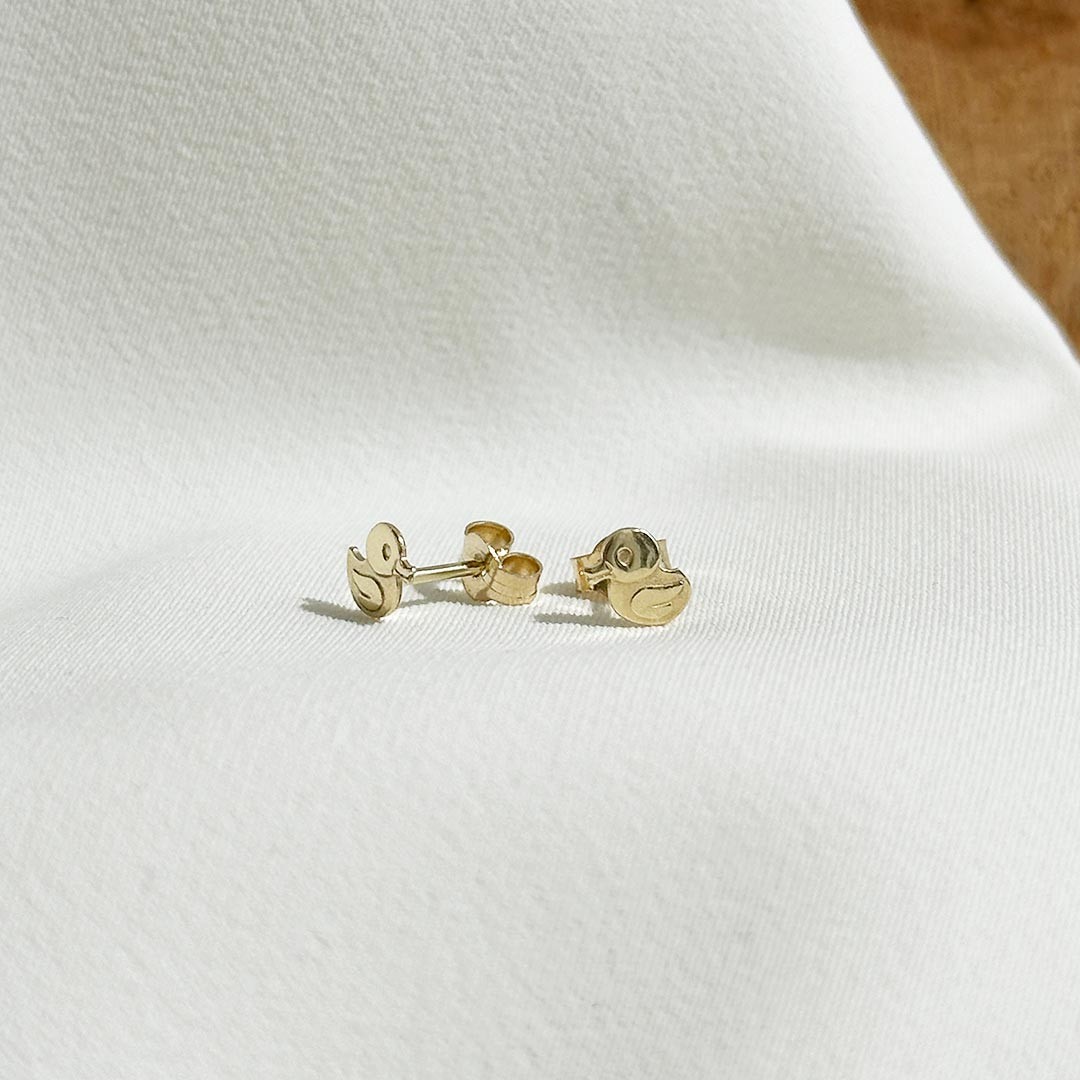 Diese entzückenden Enten-Ohrstecker aus 585er Gelbgold sind ein liebevoll gestaltetes Schmuckstück für Kinder. Mit einer Größe von 6mm passen sie sich kleinen Ohrläppchen perfekt an und sorgen mit ihrer fröhlichen Form für ein Lächeln im Gesicht. Das kindgerechte Design verbindet spielerische Leichtigkeit mit hochwertiger Verarbeitung – ideal für den ersten Ohrschmuck oder als Geschenk, das Freude macht und in Erinnerung bleibt. Die Enten symbolisieren Lebensfreude und Unbeschwertheit und sind daher besonders beliebt bei jungen Tierfreundinnen. Ob zur Taufe, zum Geburtstag oder als kleines Zeichen der Zuneigung – diese Ohrstecker begleiten Kinder durch den Alltag und besondere Anlässe.
