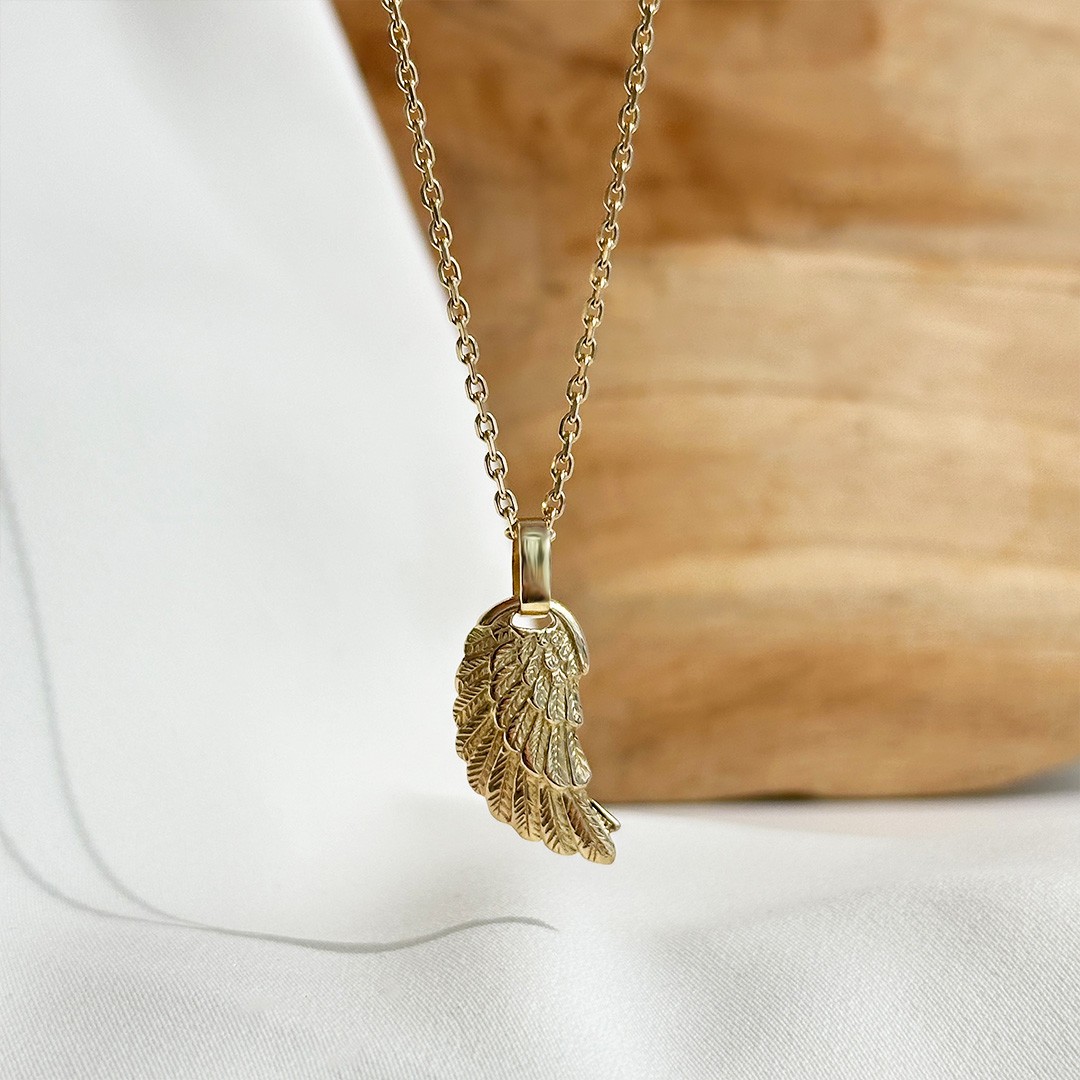 Dieser Flügel Anhänger ist aus 585 Gelbgold gefertigt. Der Goldflügel steht für Geborgenheit und eignet sich daher ideal als Geschenk für einen besonderen Menschen. Eine passende Goldkette finden Sie selbstverständlich auch in unserem Sortiment. Sollten Sie eine bestimmte Kettenart oder Kettenlänge benötigen, stehen wir Ihnen gerne zur Verfügung.
