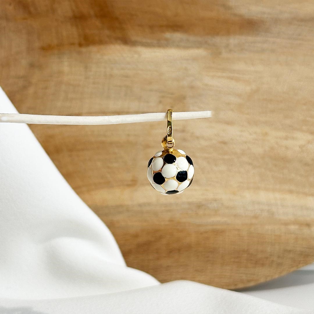 Dieser kleine Fußballanhänger aus 585er Gold begeistert alle sportbegeisterten Fußballfans – egal ob Mädchen oder Buben. Mit seiner Größe von 10mm ist er ein charmantes Detail, das sowohl an einem Bettelarmband als auch an einer feinen Halskette getragen werden kann. Die sorgfältig gearbeiteten Konturen des Balls machen ihn zu einem sportlich-verspielten Begleiter, der sich wunderbar als Geschenk zur Einschulung, zum Geburtstag oder zur bestandenen Prüfung eignet. In unserem Sortiment finden Sie eine schöne Auswahl an passenden Bettelarmbändern und Goldketten in verschiedenen Längen und Stärken – damit der Anhänger perfekt zur Geltung kommt.