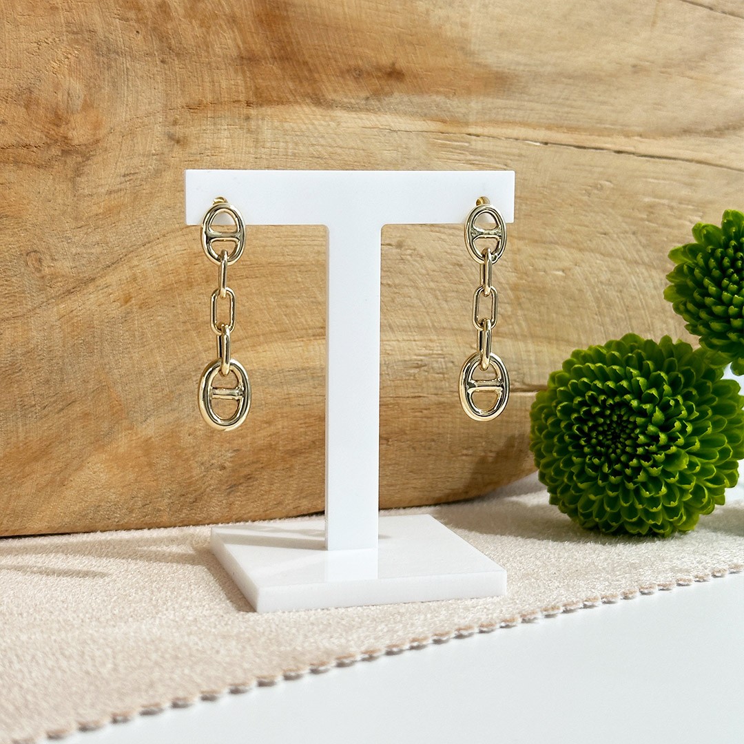 Diese Ohrringe aus 585er Gelbgold vereinen Eleganz und Leichtigkeit in einem harmonischen Design. Mit einer Länge von 30mm bestehen sie aus weich geformten, ovalen Gliedern, die sanft schwingen und für eine dezente Dynamik sorgen. Die Gestaltung – schlichte Glieder kombiniert mit Elementen, die durch einen feinen Steg unterteilt sind – verleiht den Ohrringen eine besondere Raffinesse. Sie sind unaufdringlich, schmeichelnd und setzen stilvolle Akzente, ohne aufdringlich zu wirken. Die warme Goldfarbe bringt ihre Ästhetik perfekt zur Geltung, sodass sie sowohl im Alltag als auch zu besonderen Anlässen getragen werden kann.