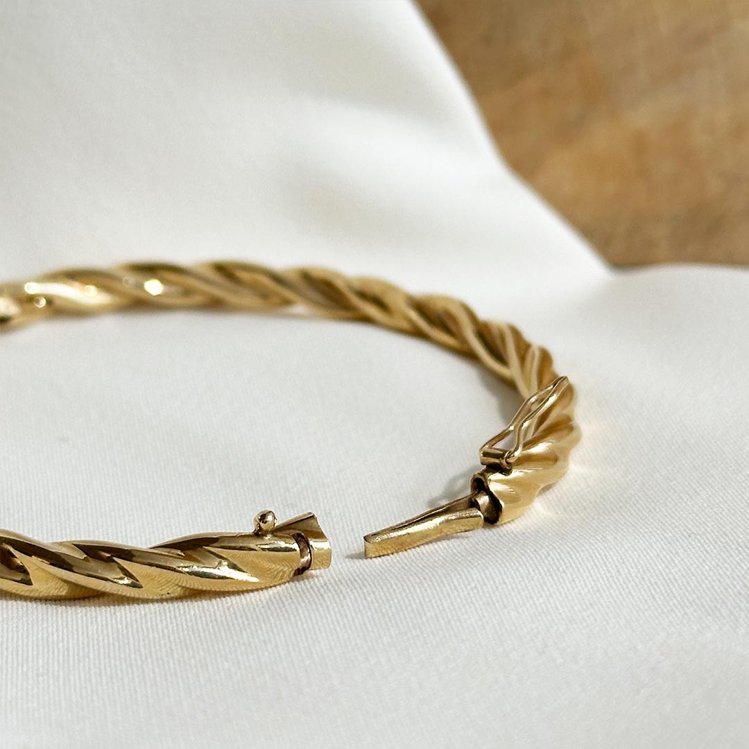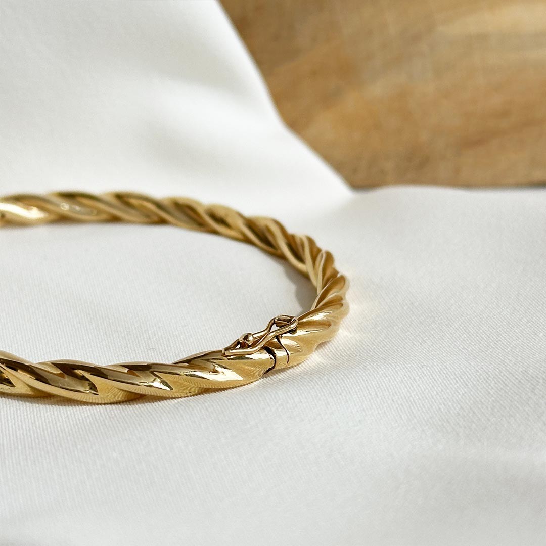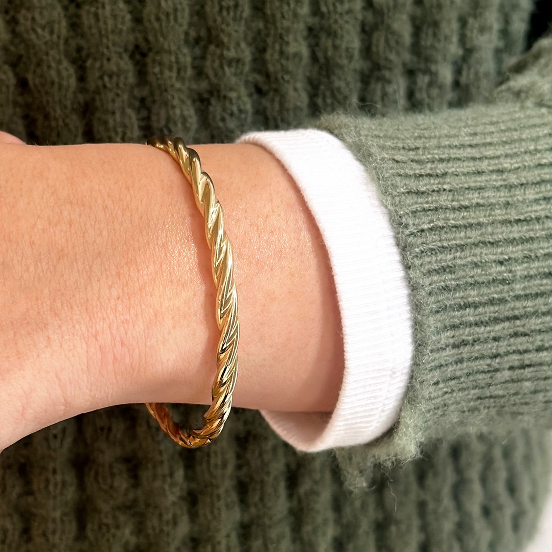 Dieser klassisch-elegante Armreif aus 585er Gelbgold überzeugt durch ein schlichtes und dennoch raffiniertes Kordeldesign mit einer Breite von 5mm. Die solide Verarbeitung macht ihn zu einem verlässlichen Begleiter für alle Gelegenheiten. Das warme Gelbgold verleiht dem Armreif nicht nur eine zeitlose Ausstrahlung, sondern auch eine harmonische Präsenz am Handgelenk. Sein schlichtes Design ermöglicht eine vielseitige Kombination mit anderen Schmuckstücken – besonders beliebt ist die stilvolle Kombination mit einem Perlenarmband.