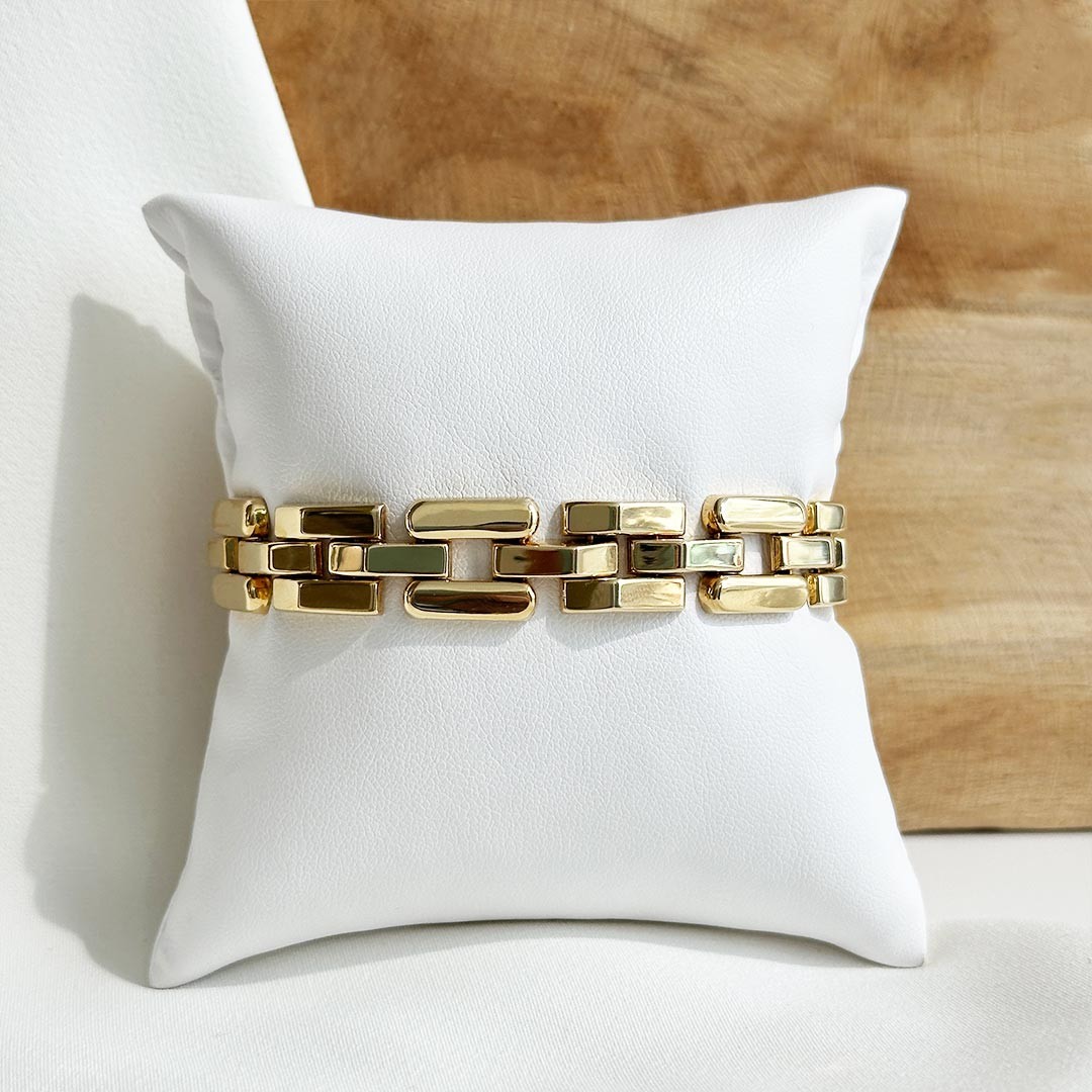 Entdecken Sie zeitlose Eleganz mit unserem Damenarmschmuck aus 585er Gelbgold. Das Armband, das eine Länge von 19cm aufweist, besticht durch seine großzügige Breite von 13mm, was ihm einen markanten und dennoch raffinierten Charakter verleiht. Dieser Armschmuck ist mehr als nur ein Accessoire – er ist ein Statement für Stil und Individualität. Der warme Goldton macht dieses Armband zu einem zeitlosen Begleiter für jeden Tag aber auch für besondere Anlässe. Kombinieren Sie es geschickt mit anderen Schmuckstücken aus unserer Schmuck-Kollektion, um Ihren persönlichen Stil zu unterstreichen.