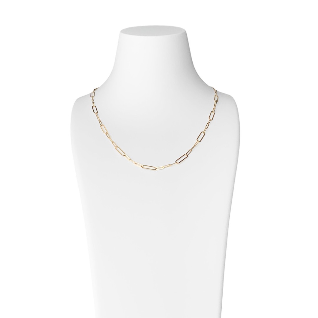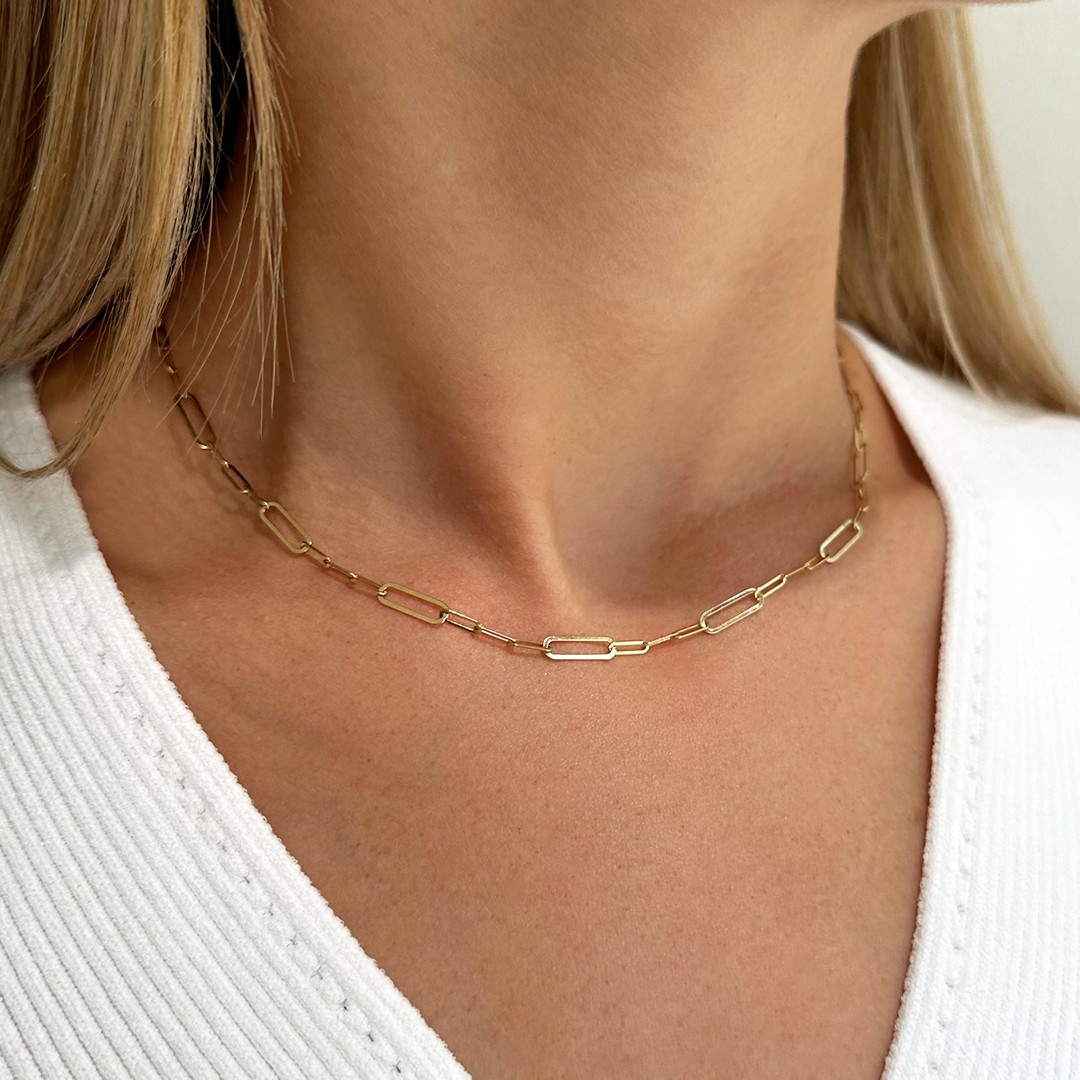 Diese Goldkette für Damen aus 585 Gelbgold, im angesagten Paperclip-Design, bezaubert mit einer Länge von 45cm. Die Schlichtheit des Designs wird durch die verschieden großen ovalen Glieder verkörpert, die unaufdringlich, elegant und dennoch zeitgemäß modern wirken. Dieses schicke Collier verleiht jeder Garderobe einen Hauch von Klasse. Entdecken Sie die perfekte Ergänzung dazu – das Goldarmband – in unserem Sortiment und erschaffen Sie eine harmonische Schmuckkombination, die Ihren individuellen Stil auf zarte Weise unterstreicht. Gerne verpacken wir Ihnen das Schmuckstück passend zum Anlass.