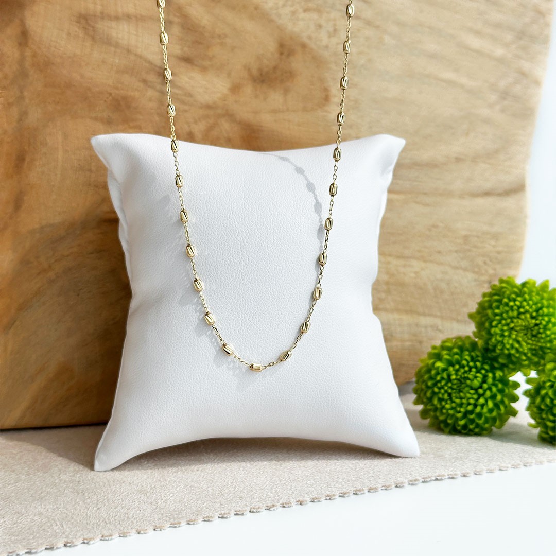 Diese filigrane Goldkette aus 585 Gelbgold vereint zarte Eleganz mit einer besonderen Raffinesse. Kleine, facettierte Kugeln schmücken die feine Kette und erzeugen ein bezauberndes Funkeln, sobald das Licht auf sie trifft. Ihr schlichtes, elegantes Design macht sie zu einem vielseitigen Schmuckstück, das sowohl alleine als auch in Kombination mit anderen Ketten getragen werden kann. Ein zeitloses Accessoire, das sanft den Hals umschmeichelt und jedem Outfit eine edle Note verleiht. Das passende Armband finden Sie ebenfalls in unserem Sortiment.