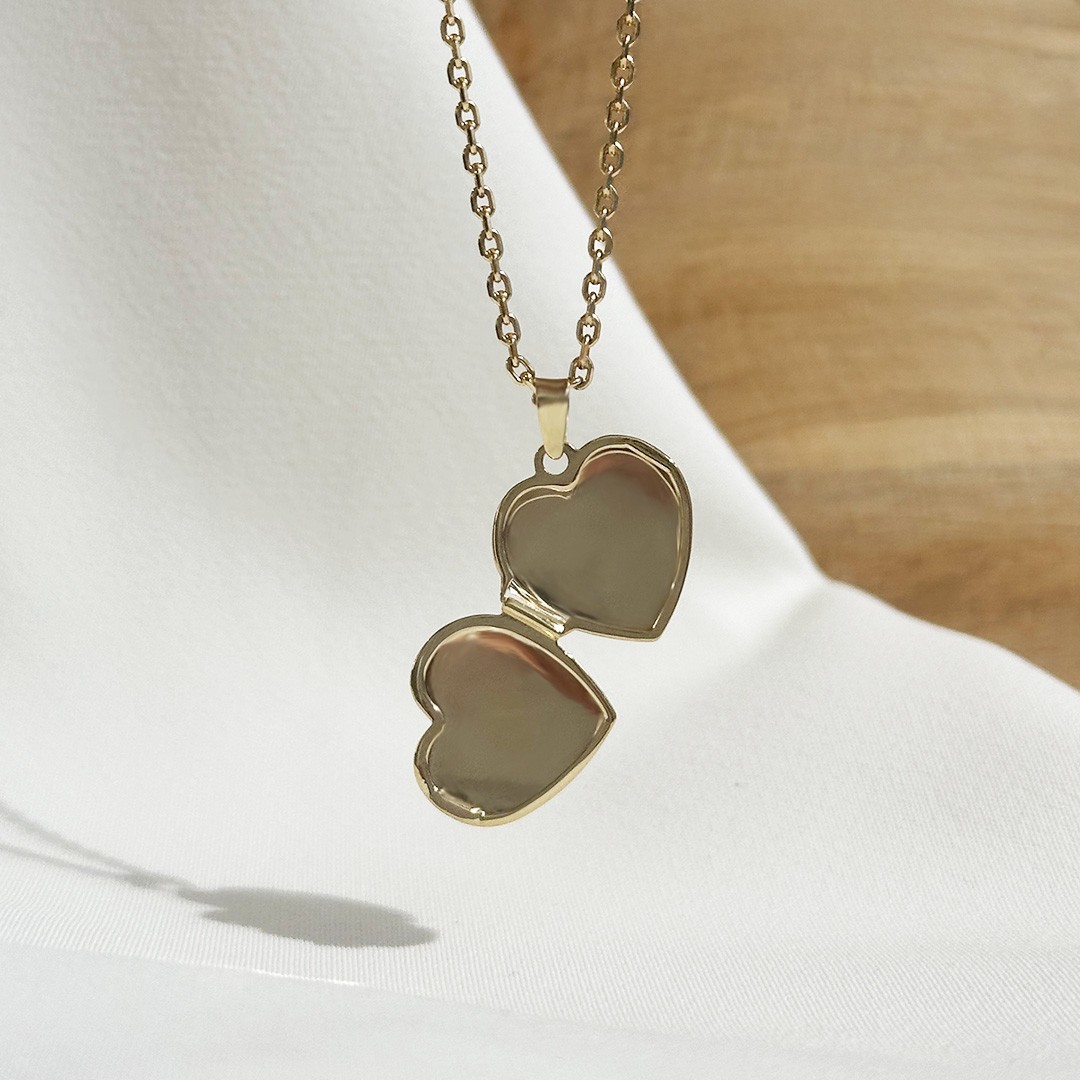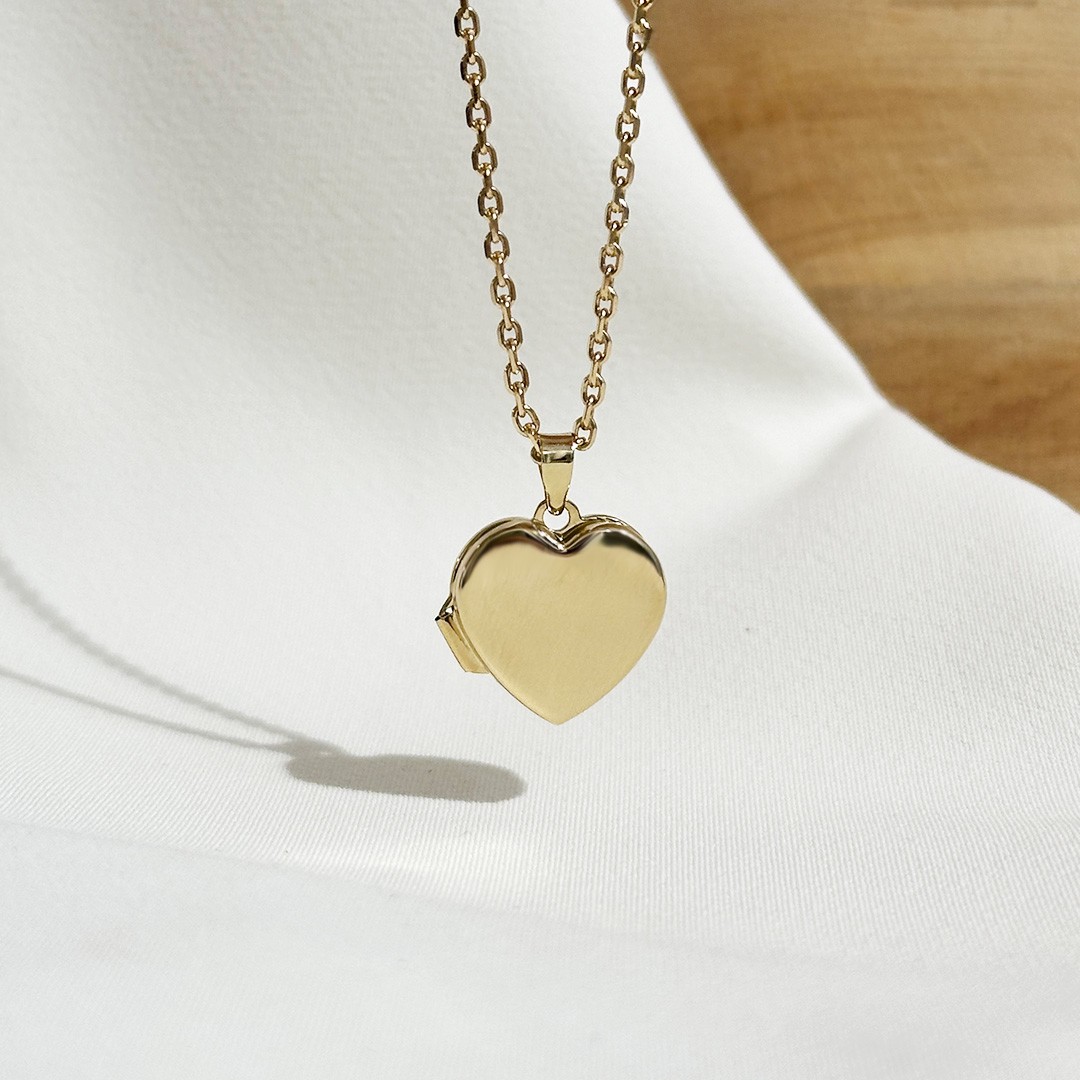 Dieses Medaillon in Herzform ist aus 585er Gelbgold gefertigt und lässt sich öffnen, sodass im Inneren Platz für zwei kleine Fotos ist. Gerne übernehmen wir das Einsetzen der Bilder für Sie. Medaillons sind seit jeher beliebte Geschenke – ob zur Taufe, zum Geburtstag, zum Hochzeitstag oder auch als Erinnerungsschmuck. Mit seiner klassischen Herzform symbolisiert dieses Medaillon Nähe und Verbundenheit und ermöglicht es, die Liebsten immer ganz nah am Herzen zu tragen. Ein zeitloses Schmuckstück mit persönlicher Bedeutung.