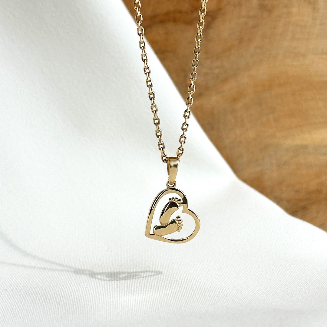 Dieser Anhänger aus 585er Gelbgold zeigt ein ausgeschnittenes Herz mit zarten Babyfüßen im Inneren – ein Symbol für Liebe, Geborgenheit und den Beginn eines neuen Lebens. Mit seiner Größe von 20mm ist er ein liebesvolles Geschenk zur Geburt, das frischgebackenen Müttern lange Freude bereitet. Ebenso eignet er sich als besonderes Präsent zum Muttertag, um die Verbindung zwischen Mutter und Kind zu feiern. Ein Schmuckstück voller Bedeutung, das Emotionen in goldener Form bewahrt.