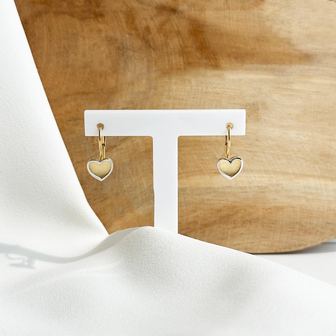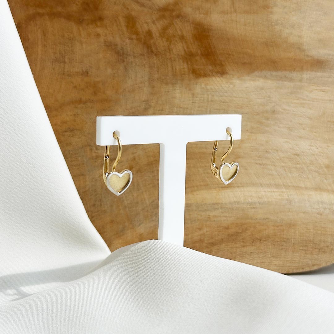 Diese bezaubernden Ohrgehänge aus 585 Gelbgold und Weißgold bestechen durch ihr romantisches Design. Die Herzen sind direkt an einer Brisur befestigt, was für sicheren Halt sorgt und ein angenehmes Tragegefühl bietet. Dank ihrer verspielten Optik sitzen die Herzen knapp unter den Ohrläppchen und schwingen sanft bei jeder Bewegung mit. Die Kombination aus Gelb- und Weißgold verleiht dem Ohrschmuck eine harmonische Zweifarbigkeit, die sich vielseitig kombinieren lässt. Ein süßes Detail für alle, die zarten, romantischen Schmuck lieben.