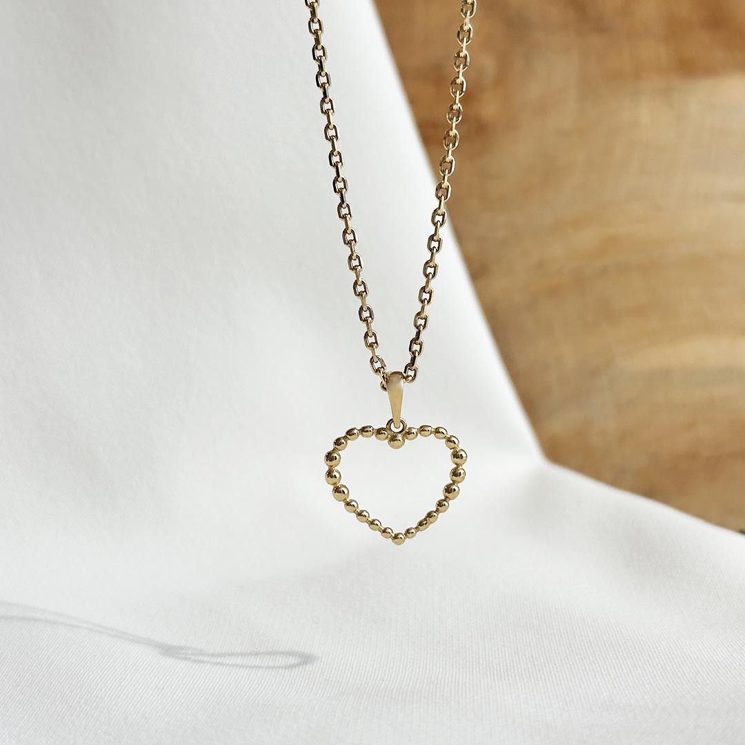 Dieser bezaubernde Herzanhänger aus 585er Gelbgold besticht durch seine filigrane Gestaltung. Mit einer Größe von 10×15 mm wirkt das Herz, als wäre es aus vielen kleinen Punkten geformt, was ihm eine besonders liebliche und verspielte Optik verleiht. Der Anhänger kann sowohl an einer zarten Halskette als auch an einem Bettelarmband getragen werden, wodurch er vielseitig einsetzbar ist. Eine passende Goldkette sowie Bettelarmbänder finden Sie selbstverständlich ebenfalls in unserem Sortiment. Ein charmantes Schmuckstück für alle, die feine und einzigartige Details lieben.