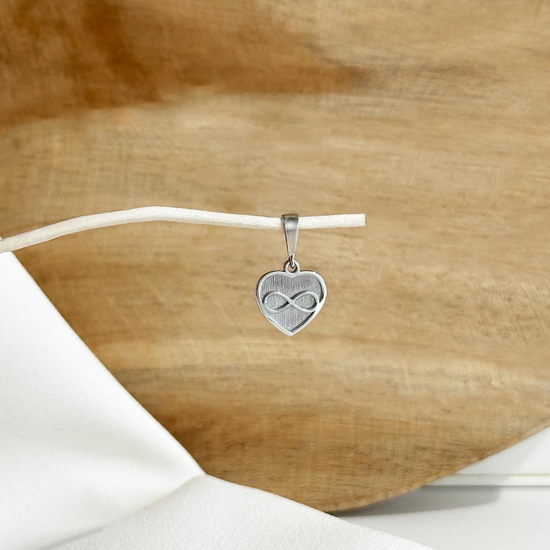 Dieser Herzanhänger mit einem Unendlichkeitssymbol in der Mitte ist aus 585 Weißgold gefertigt. Das charmante Schmuckstück, mit einer Größe von 10mm, verkörpert die unendliche Liebe auf besondere Weise. Perfekt für eine Halskette oder ein Bettelarmband, symbolisiert dieser Anhänger die unzerbrechliche Verbundenheit und Zuneigung. Lassen Sie die Liebe in Ihrem Herzen strahlen, wo immer Sie hingehen. In unserem Sortiment finden Sie auch eine Auswahl an passenden Bettelarmbändern aus Gold – in verschiedenen Längen und Stärken.
