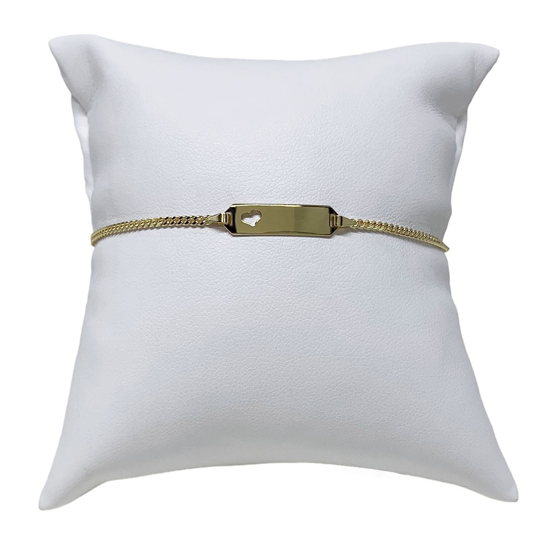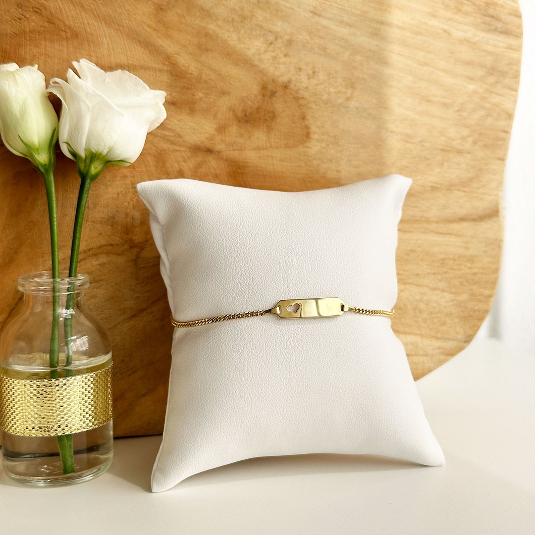 Dieses bezaubernde Schildarmband für Babys und Kleinkinder ist aus 585 Gelbgold gefertigt. Die Gesamtlänge beträgt 14cm. Dank der Zwischenöse bei 12cm kann es bei Bedarf auch noch kürzer getragen werden, um optimal an das Handgelenk anzupassen. Die Besonderheit dieses Schildarmbandes ist das kleine Herz in der Gravurplatte, das für Liebe und Zuneigung steht. Unsere Schildarmbänder werden mit großer Sorgfalt und Liebe zum Detail gefertigt und mit einer persönlichen Gravur veredelt. Ob der Name des Kindes, ein besonderes Datum oder ein kleines Symbol – wir schaffen Erinnerungen, die für immer festgehalten werden können. Diese Schildarmbänder sind wunderbare Geschenke zur Geburt, Taufe oder zum Geburtstag und begleiten die Kleinsten auf ihrem Lebensweg.