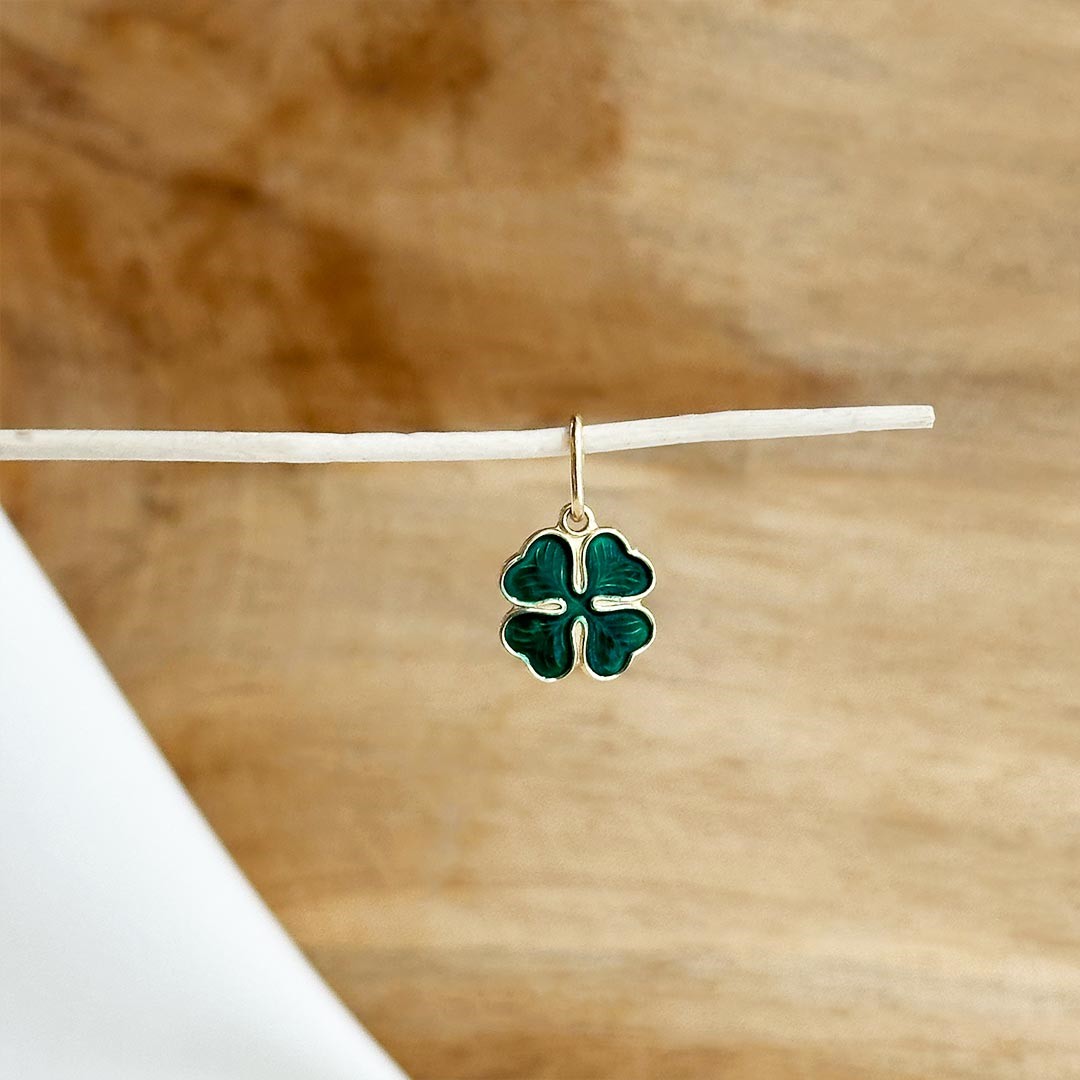Der Kleeblatt Gold-Anhänger ist aus 585 Gelbgold gefertigt. Das Kleeblatt steht seit jeher als Symbol für Glück. Mit einem lebendigen grünen Lacküberzug wirkt das Kleeblatt besonders authentisch und bildet einen ansprechenden Kontrast zum strahlenden Gold. Goldene Bettelarmbänder und eine große Auswahl an Goldketten in verschiedenen Längen finden Sie selbstverständlich auch in unserem Sortiment.