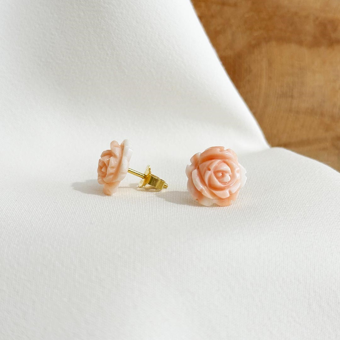 Diese besonderen Ohrstecker vereinen zarte Farben mit liebevoller Handwerkskunst: Die Koralle ist kunstvoll in Form einer kleinen Rose geschliffen. Montiert auf 585er Gelbgold-Patenten, bleibt der Fokus ganz auf der fein gearbeiteten Koralle – von vorne ist ausschließlich der Rosenkopf sichtbar. Diese Ohrstecker sind ein wunderschöner Blickfang für alle, die florale Designs oder Korallenschmuck lieben. Ob als charmantes Detail im Alltag oder als liebevolles Geschenk – sie bringen blumige Freude in jedes Schmuckkästchen.