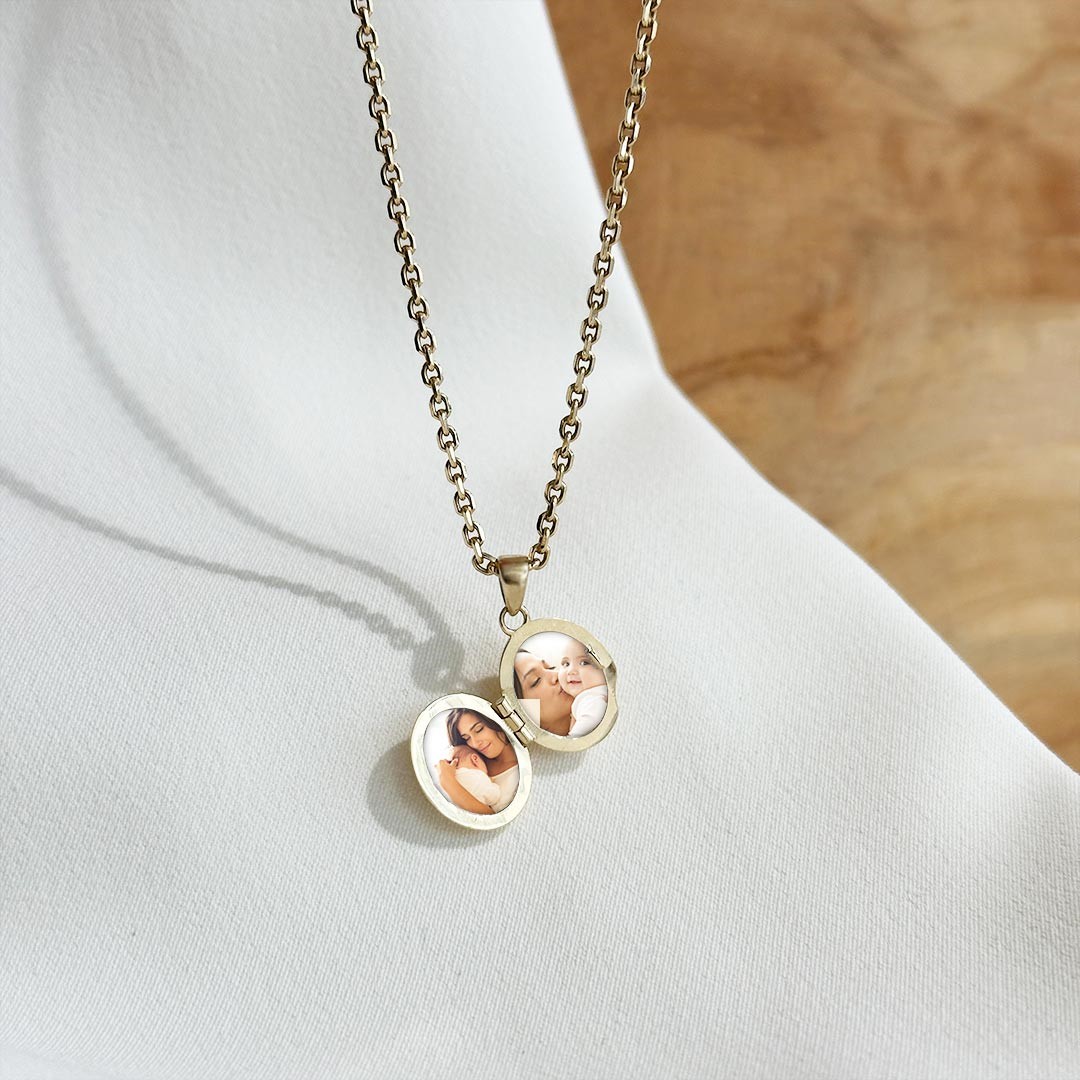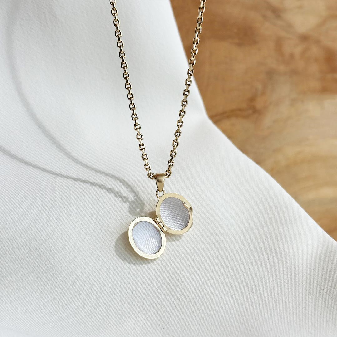 Dieses kleine 585 Gold Medaillon eignet sich wunderbar als Geschenk für besondere Anlässe und Momente, die im Herzen verankert bleiben sollen. Das ovale Medaillon hat eine Größe von 12mm. Es lässt sich seitlich öffnen und bietet somit die Möglichkeit, zwei Erinnerungsfotos an magische Momente oder geliebte Menschen darin aufzubewahren. Für eine persönliche Note übernehmen wir gerne kostenlos das Einsetzen Ihres Lieblingsfotos. Das polierte Medaillon ist ein kostbares Schmuckstück, das die Erinnerungen und Emotionen in sich trägt und bei jedem Blick darauf eine ganz besondere Bedeutung entfaltet. Passende Goldketten in unterschiedlichen Längen und Stärken finden Sie ebenfalls in unserem Sortiment.